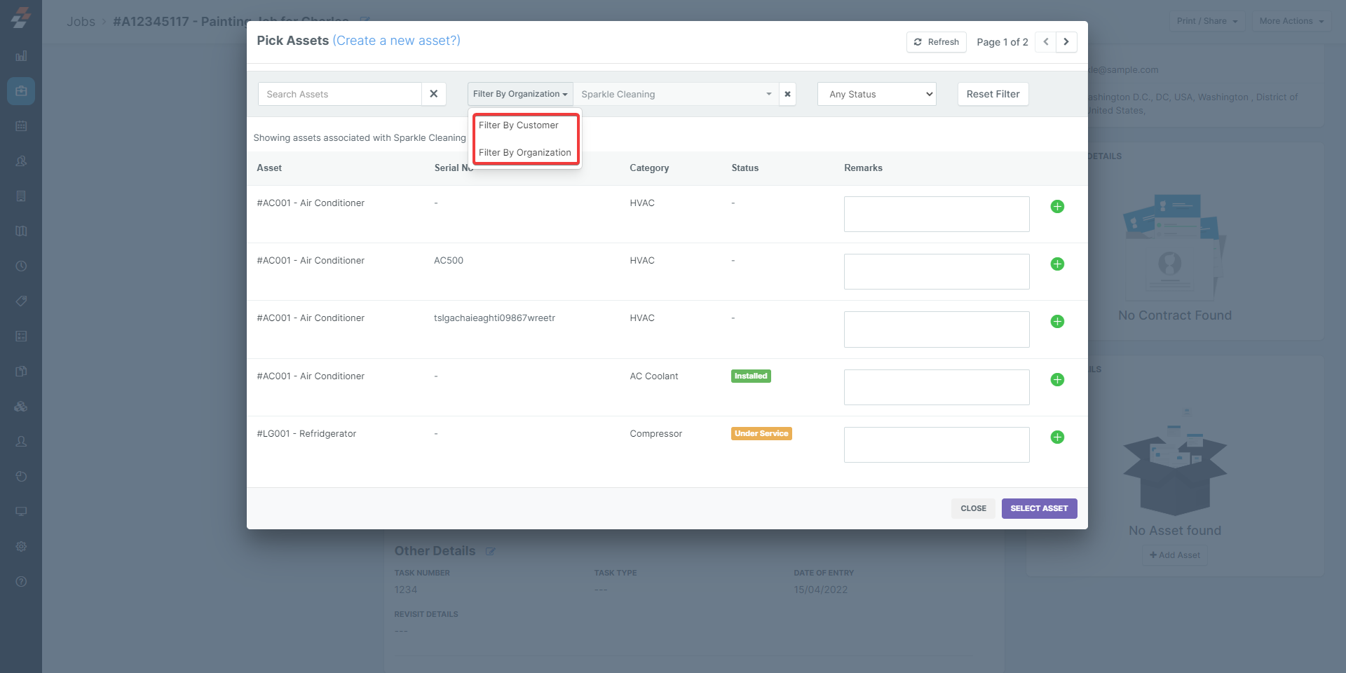 - You will see a Choose Asset dialog listing all the available assets associated with that specific customer.
