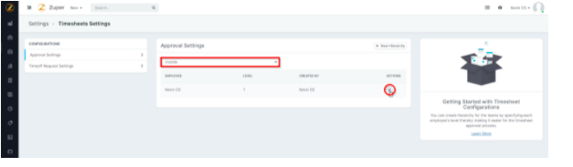 9. Similarly, to remove an employee from the Hierarchy, select the respective team, and click on "Delete Hierarchy" under the action column.