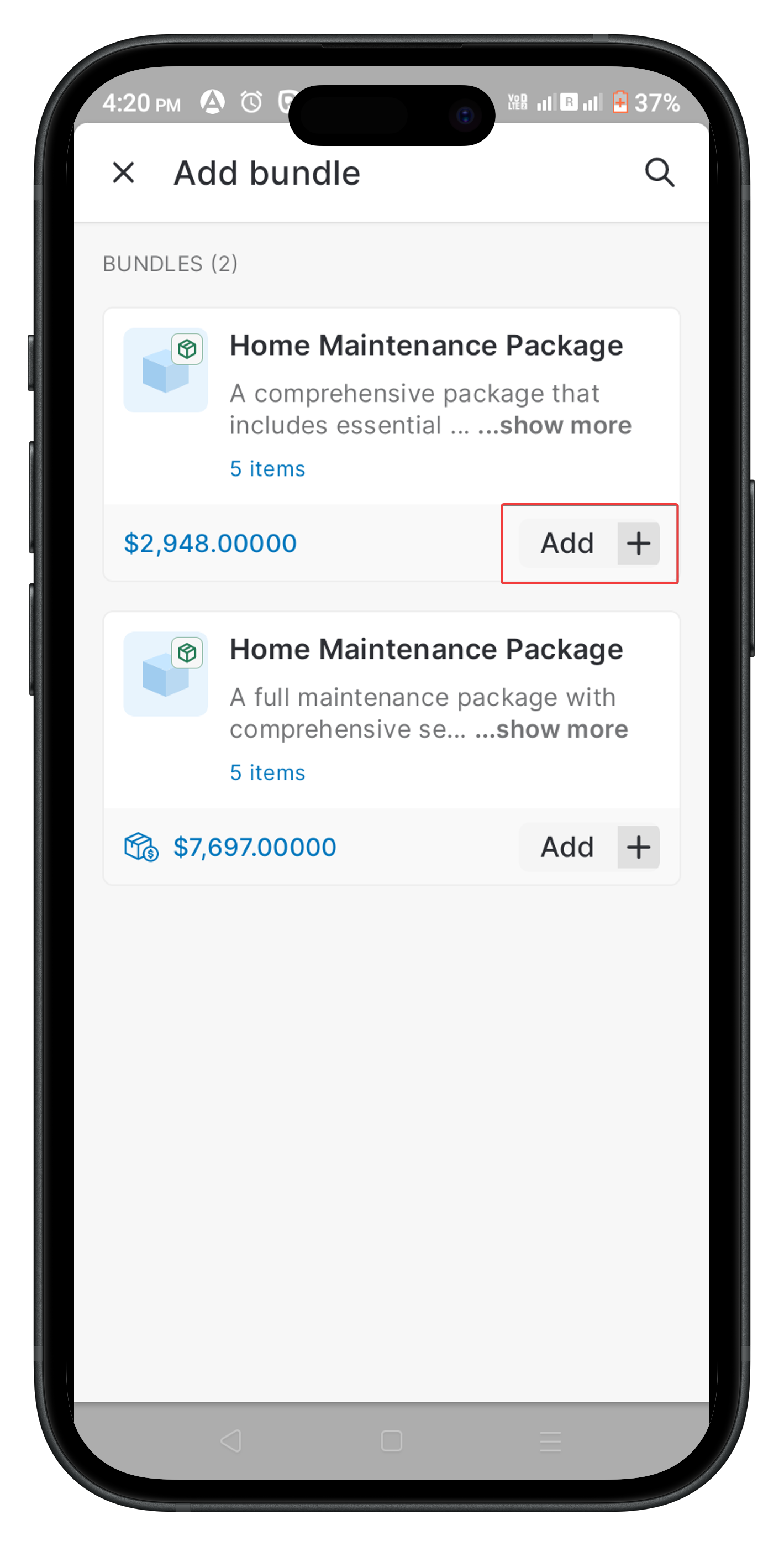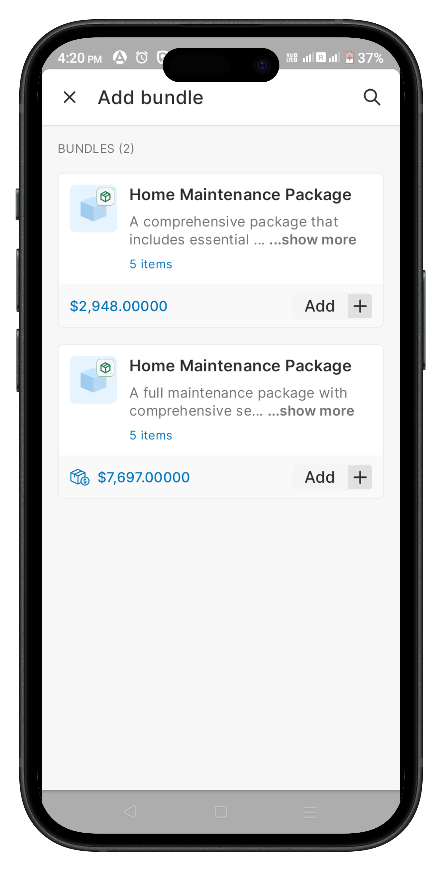 This article provides a step-by-step guide to adding product bundles to your transactions within the Zuper Mobile App.