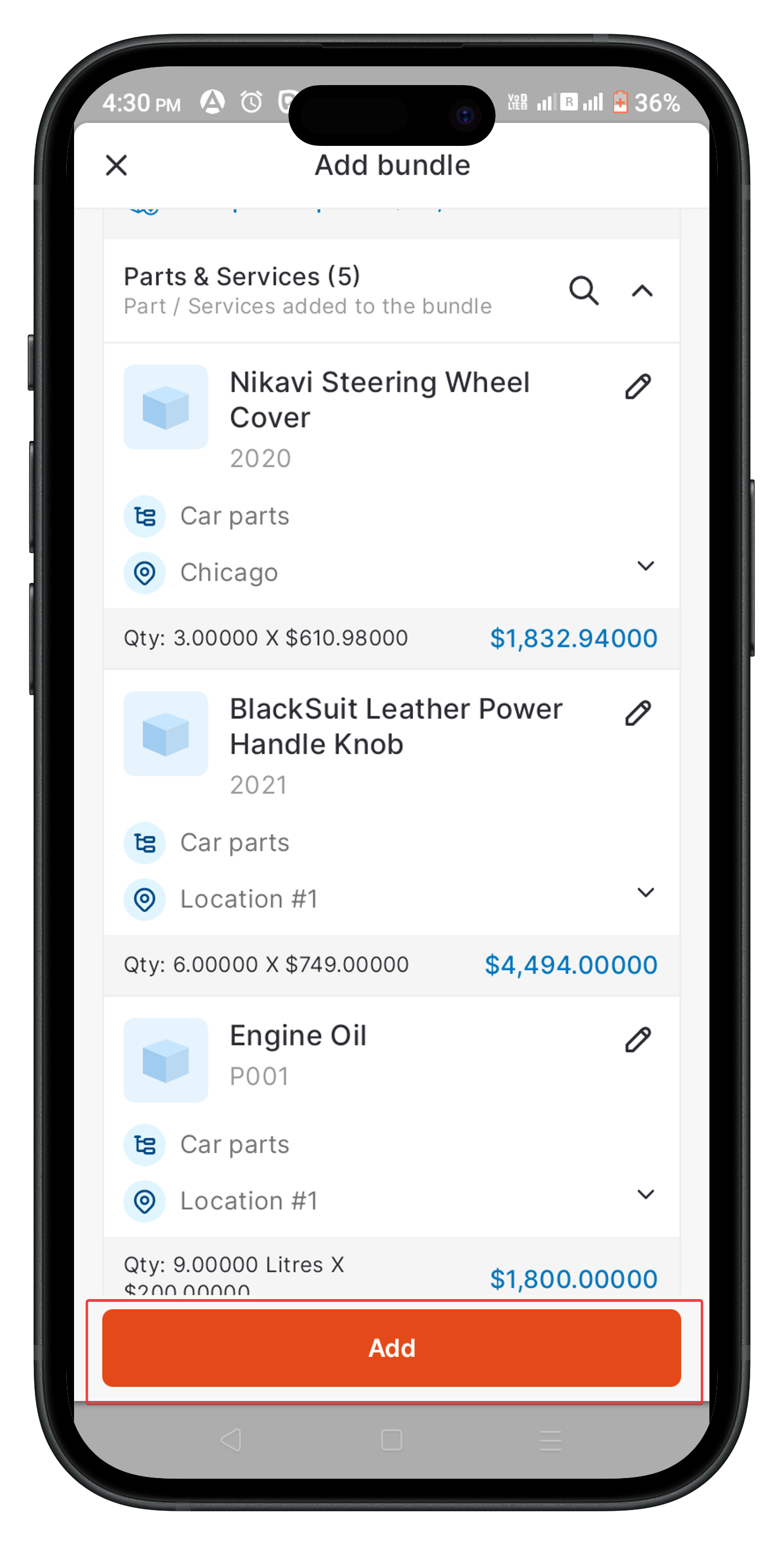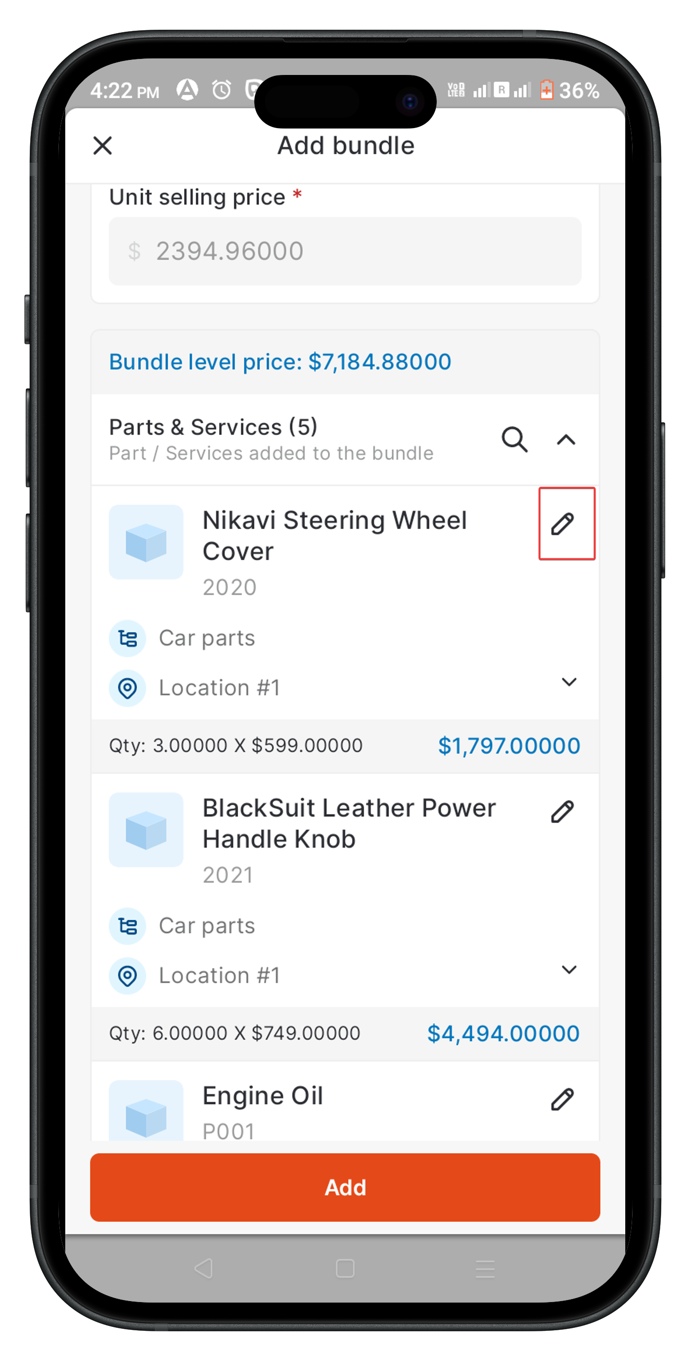 Edit" icon on any item within the bundle to update its details.