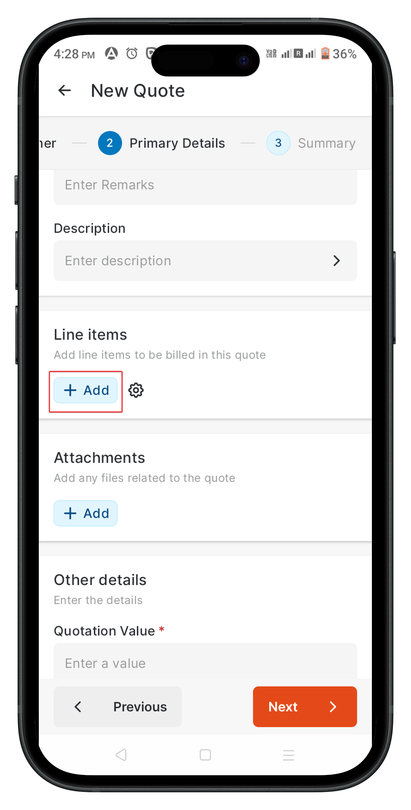 1. Locate and tap "Add" under "Line Item/Product" section. This will allow you to add items to the transaction.