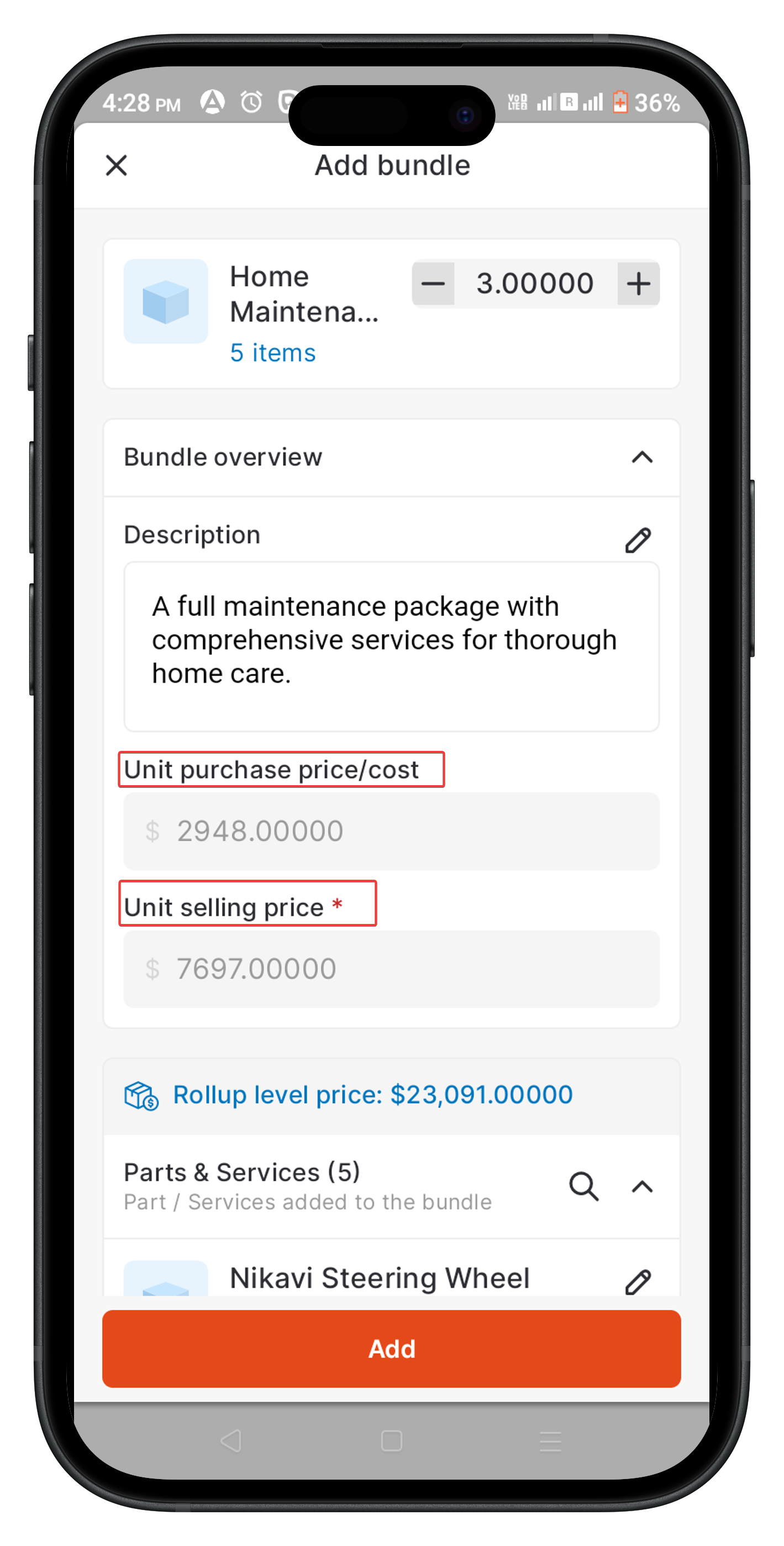 - Unit Selling price: This is the total price at which the bundle will be sold to the customer.