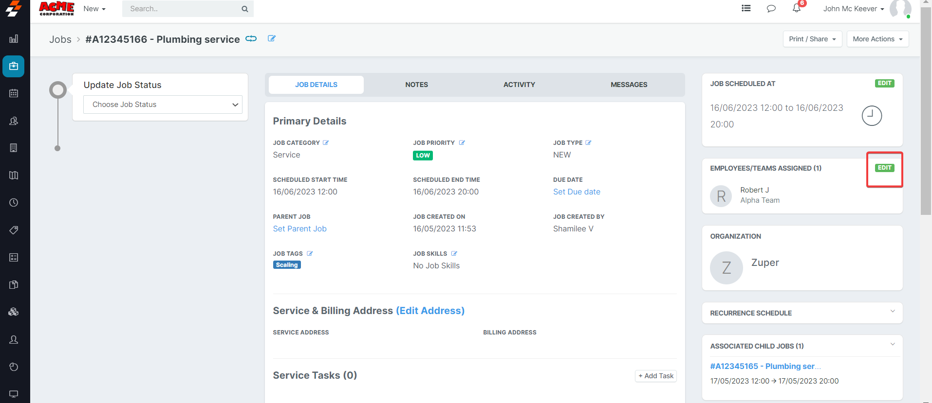 Open Job Details Page and click on Edit under the Assigned Employees Tab