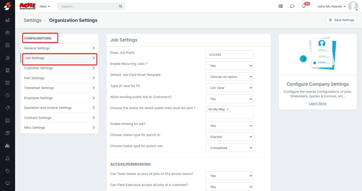 “Configurations,” select the “Job Settings.”
