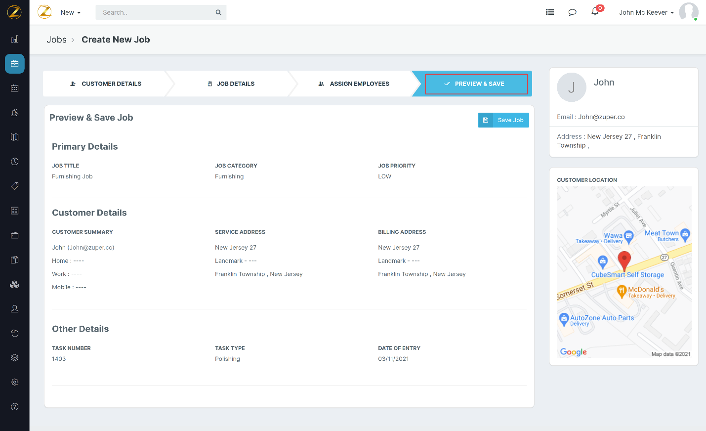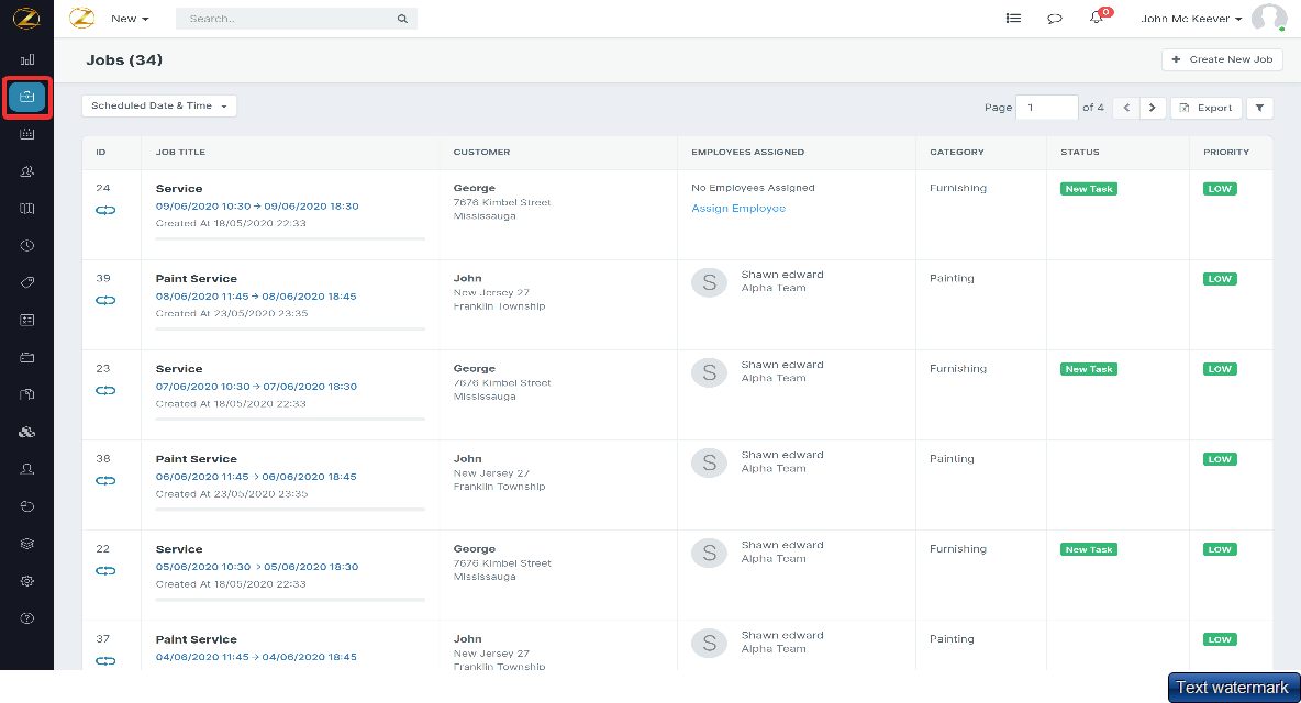 1. Click the “Jobs” module from the left pane and select “Create New Job.” or select the “Quick Access Menu” on the top navigation bar.