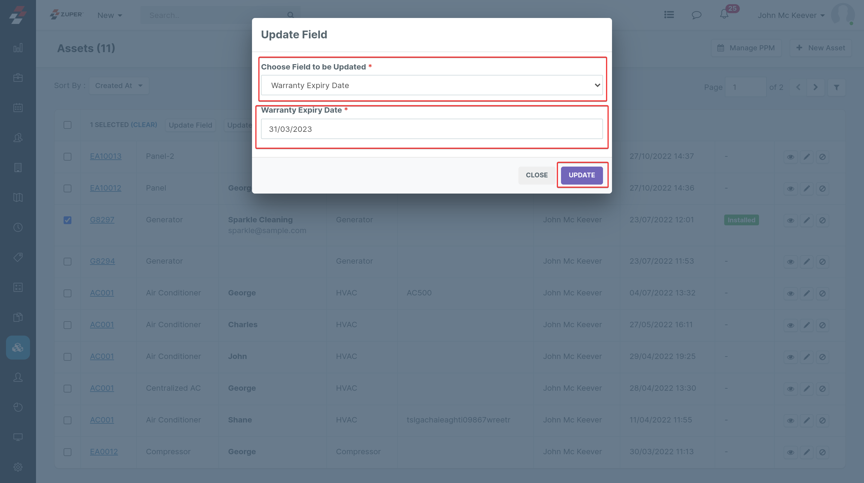 2. The “Update Expiry Date” pop-up helps users modify the asset’s expiry date status in bulk and select