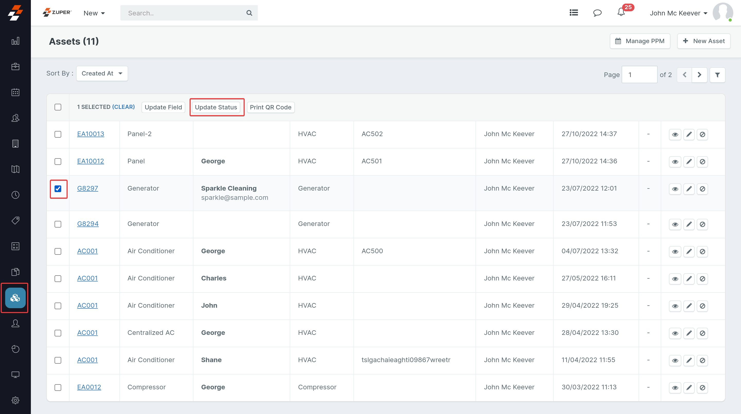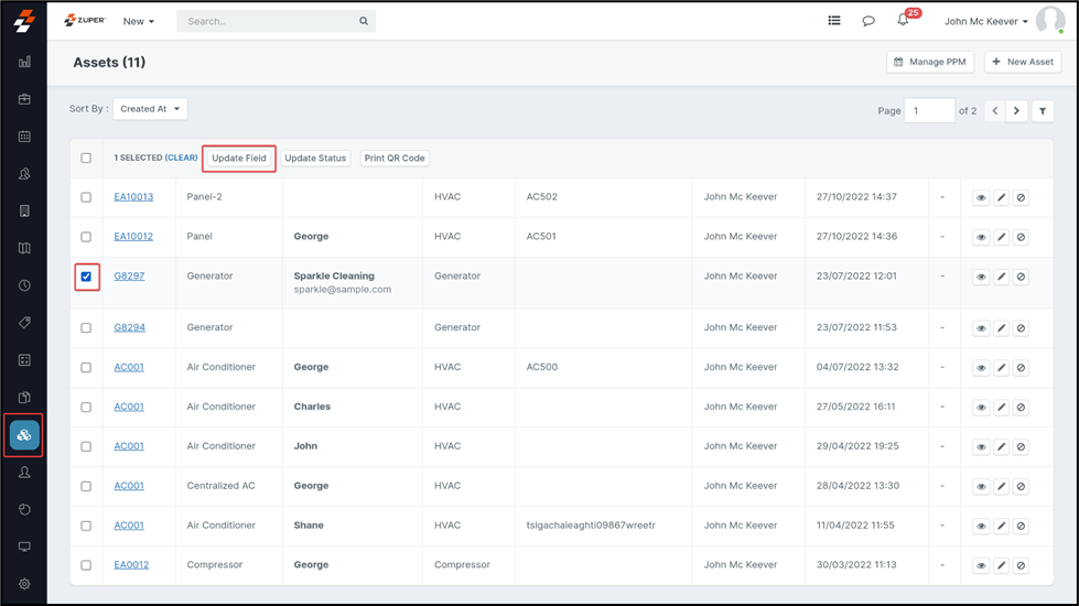 1. Select the “Assets” module from the left panel and select the assets you want to bulk