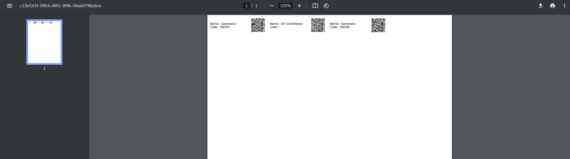 Print QR code is available for less than 100 assets at a time; if more than 100 assets are selected, the PDF is generated and sent over email. We can print