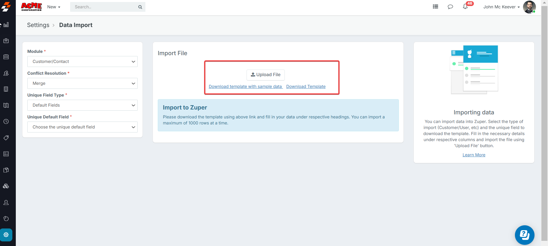 The data import is critical, and now the user can import the recurring jobs in a single shot with the “Data Import” option. Navigation: Settings --> General Settings --> Data Import 1. Select the “Settings” module from the left panel, and under the ...