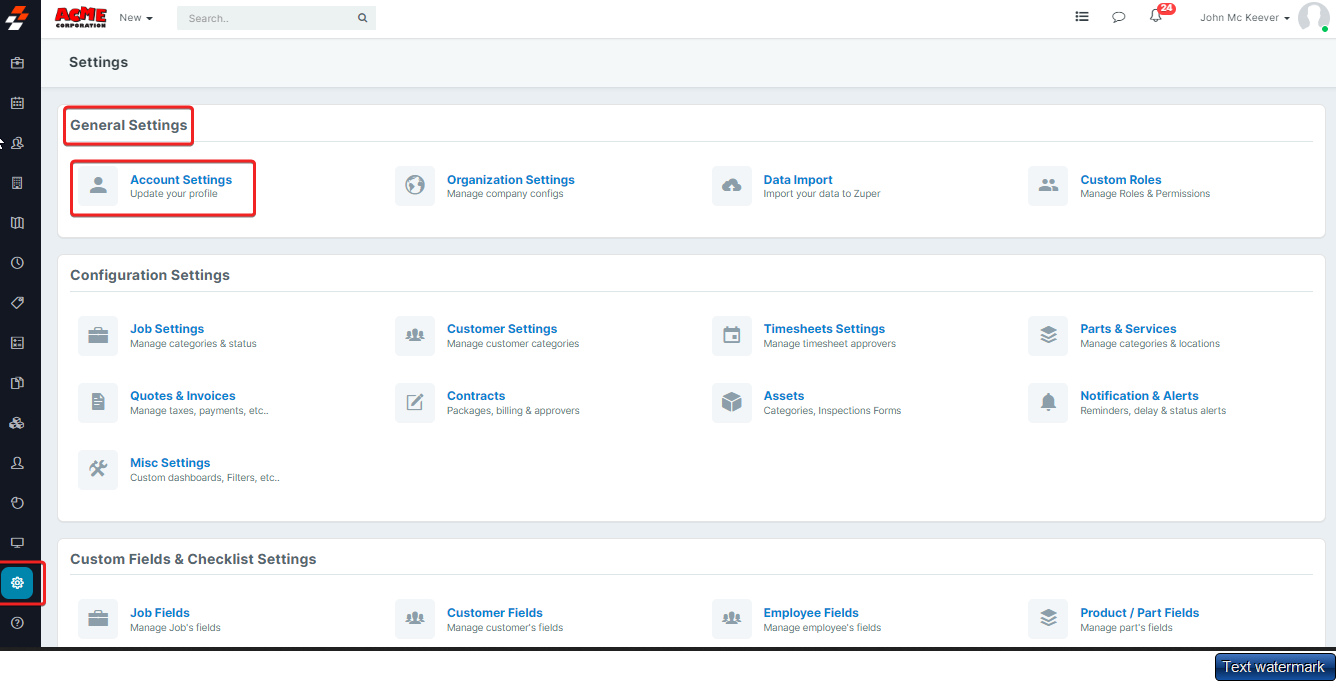 - In the General Settings panel, click on "Account Settings" in the settings tab.