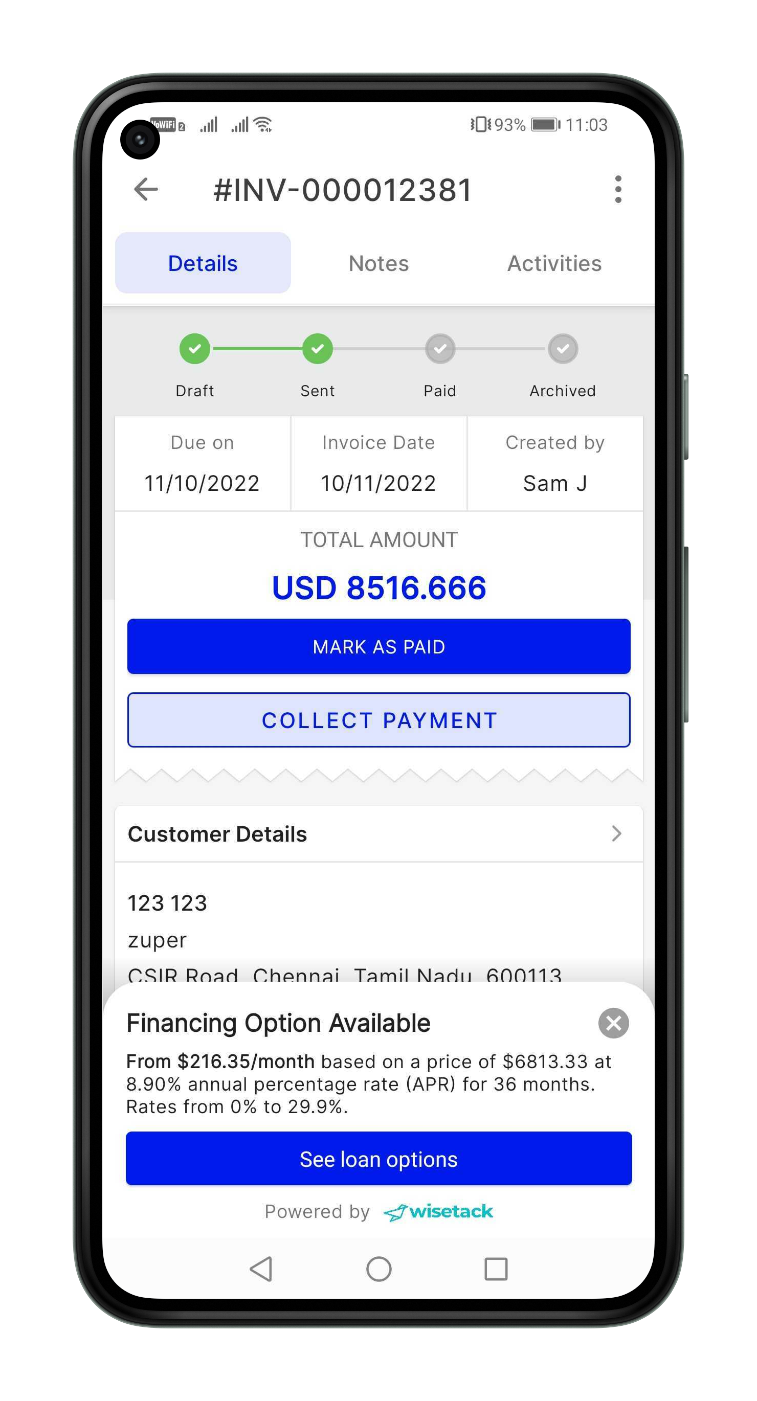 Payment collection is made easy with our Zuper Mobile App. Payment History