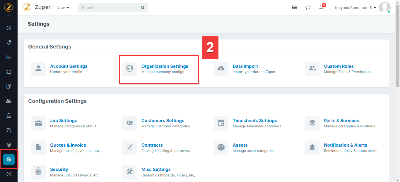 3. Next, Select “Quotation and Invoice Settings” under the “Organization Settings.”