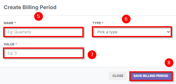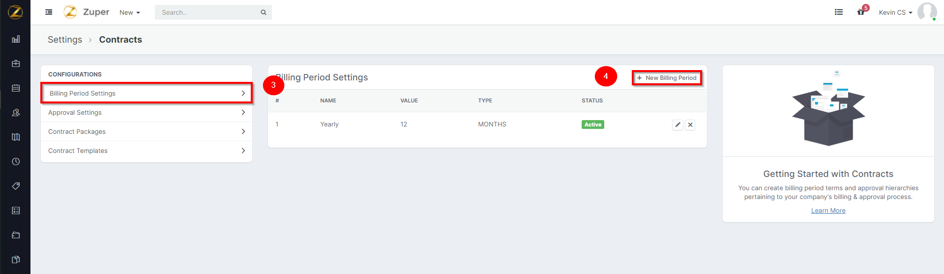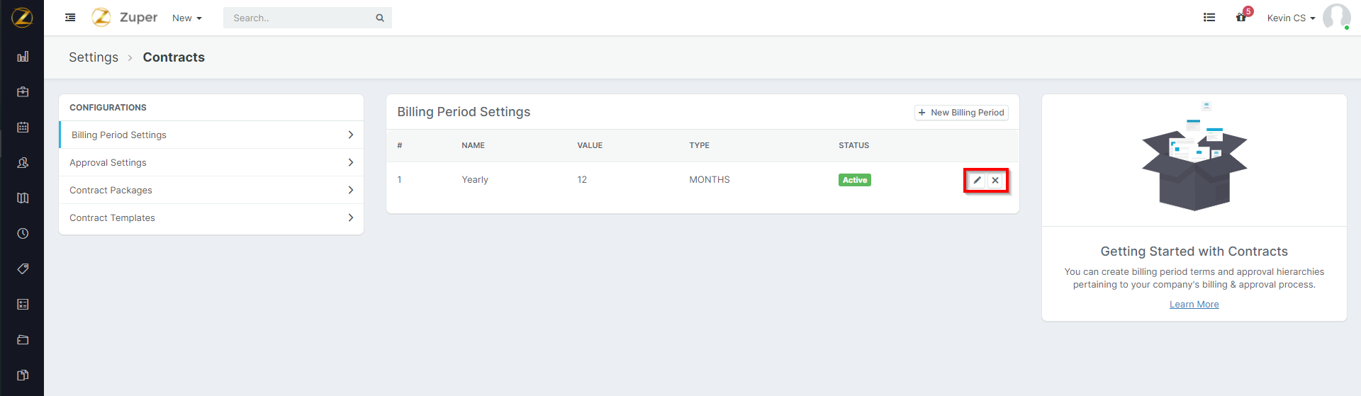 Similarly, click on the "Edit"(pencil icon) next to the Billing period to be edited. This will bring up the "Update Billing Period" window, make the required changes, and click on "Save Billing Period"