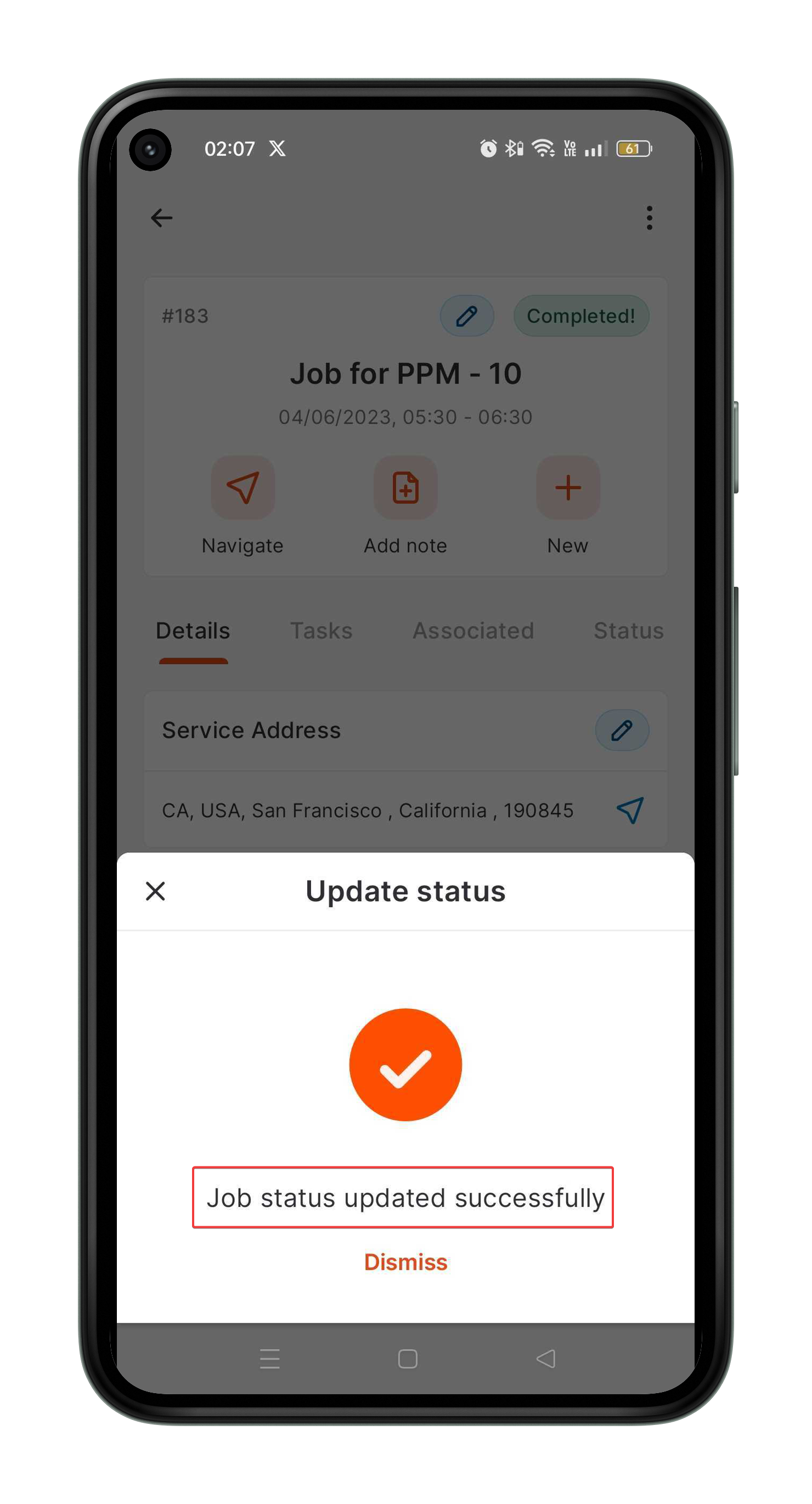 3. A checkbox on the ‘Restrict Status Update’ will restrict the field executive from further Job status. Click