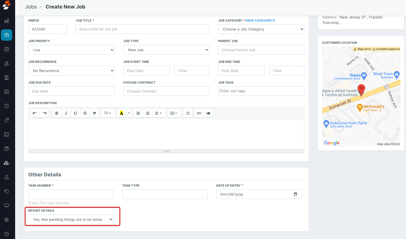 Custom fields defined by a business often have dependent aspects, and they play a substantial role in ensuring checklist progress. While creating a new job, proper validations are performed for user-defined fields.