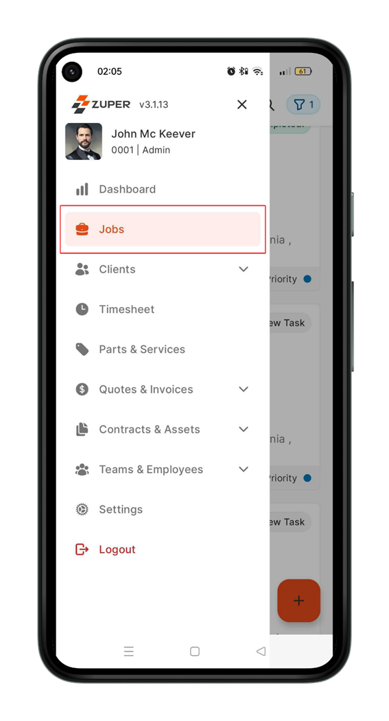 - To create a New Job Checklist, navigate to the "Settings" module in the Menu.