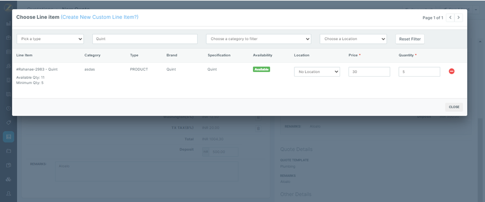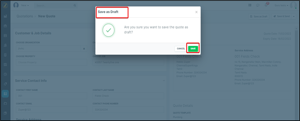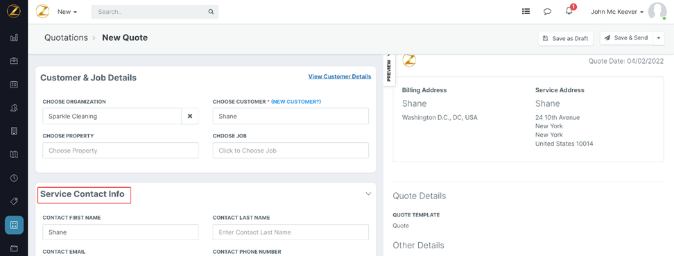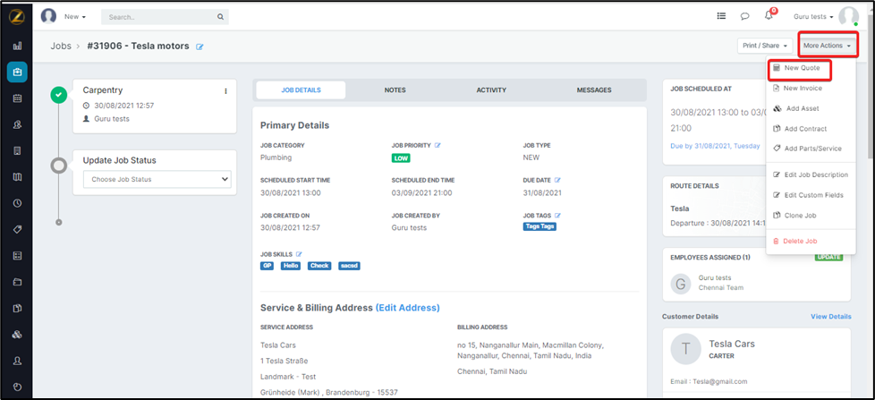 5. Select the “New Quote” option under the “More Actions” section for the created Job, select the “New Quote” option.C. Create an Invoice for an Organization.