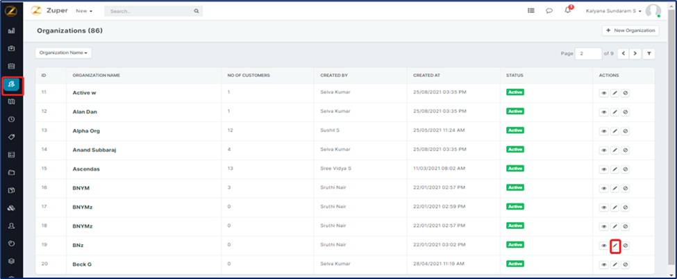 1. Select the “Organizations” module from the left