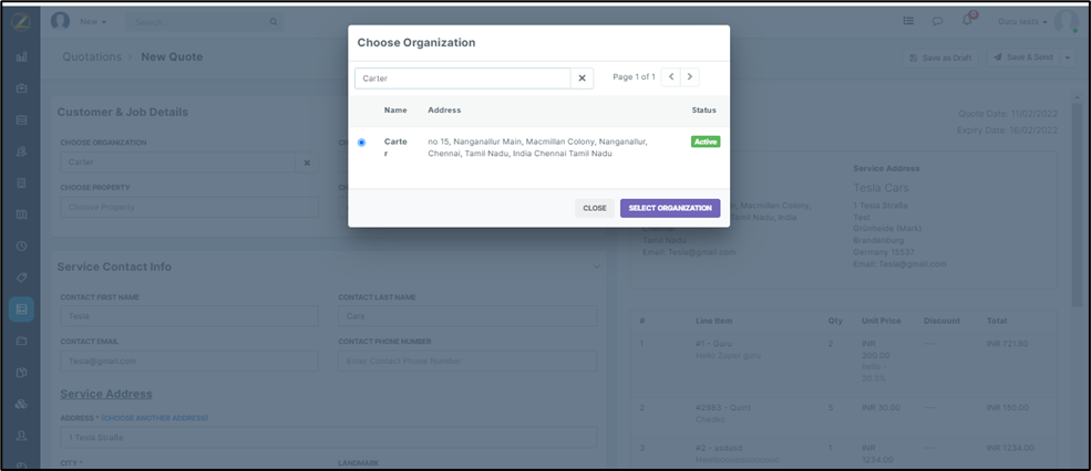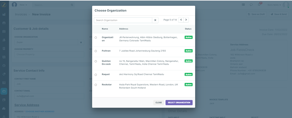 The organization module helps manage the company details, and in this module, you can add edit Organization information with ease. You can create a Job / Quote / Invoice for an organization without any hassle.