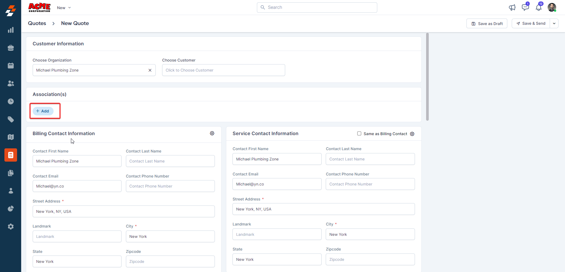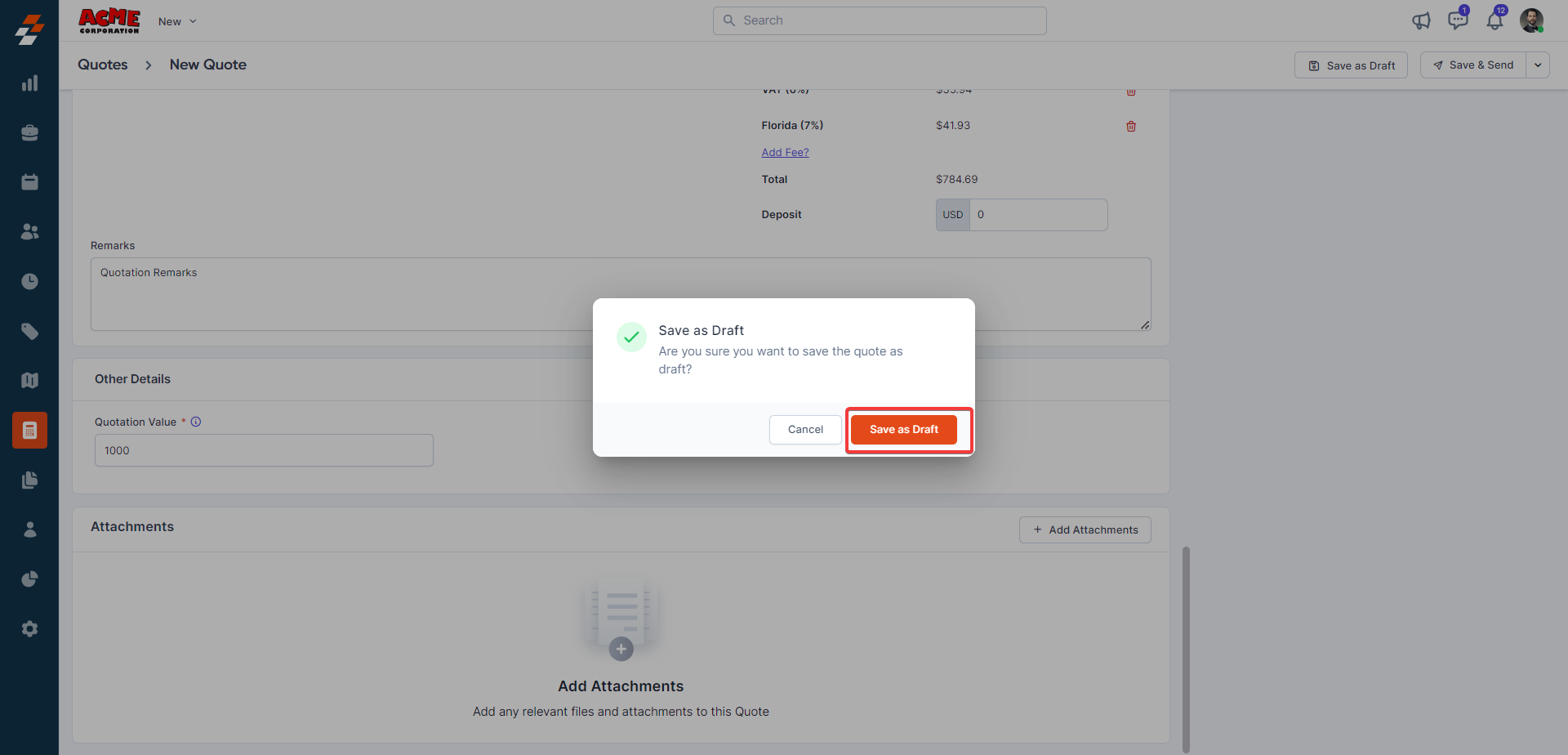 1. Select the “Quotes” icon from the left panel and choose “+ New Quote” to create a new quote.