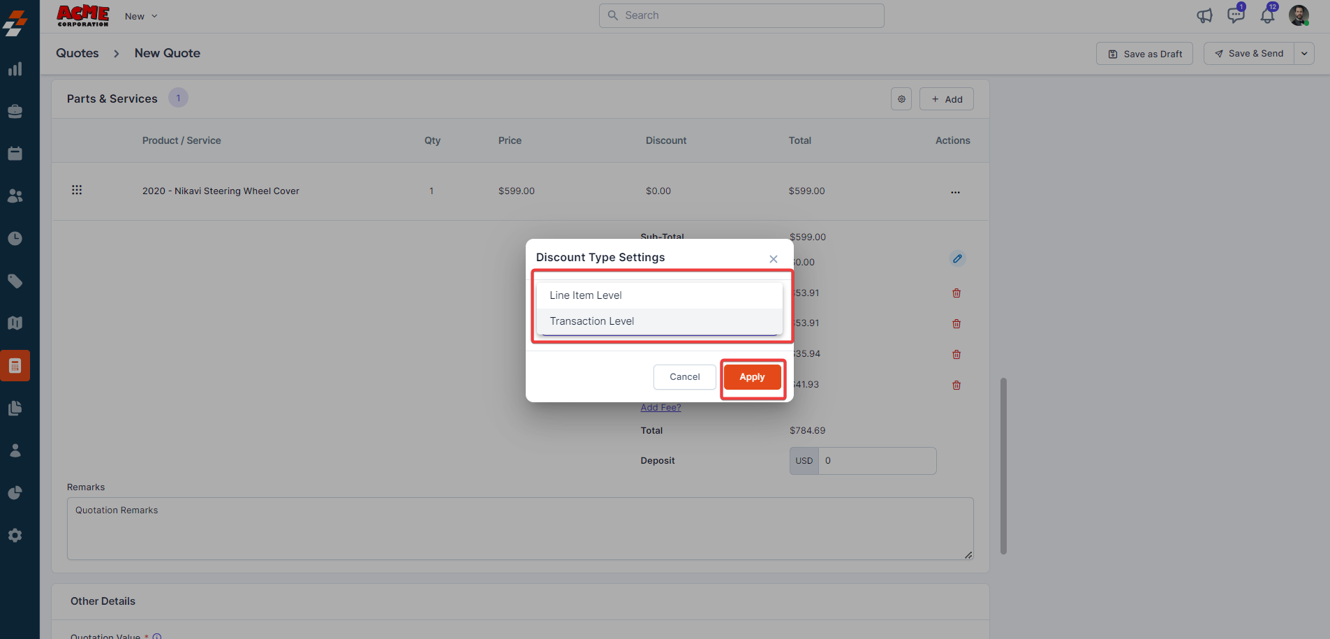 1. Line Item - Choose this if you want to add any part or service that needs to be included in the quote.