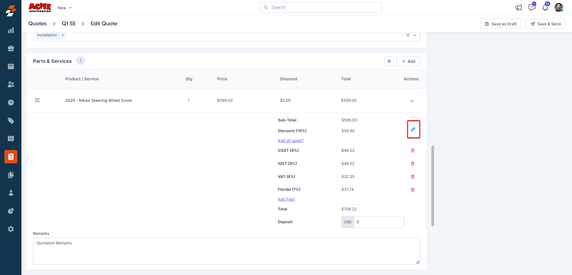 Quotations are sent to customers before the commencement of a job for acceptance. Once accepted by the customer, technicians will perform the services or replace the parts listed in the quote to complete a job.