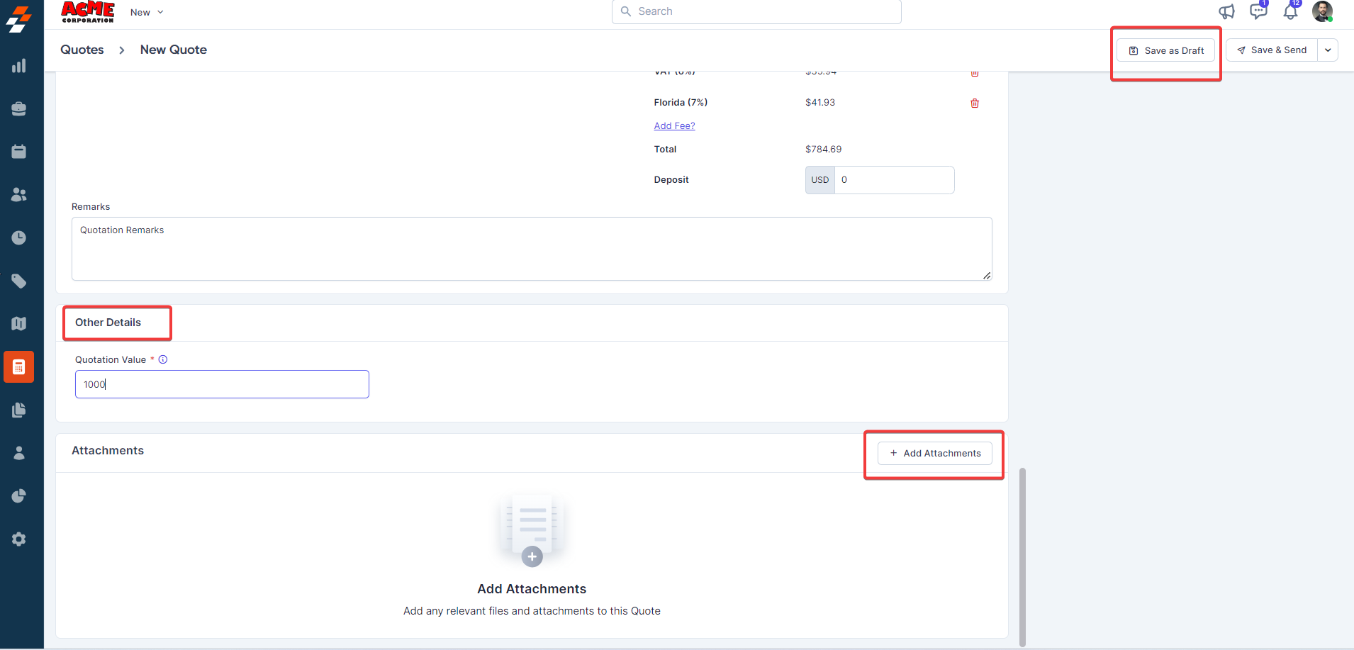 12. Click "+Add Attachments" to add the quotation-related attachments.