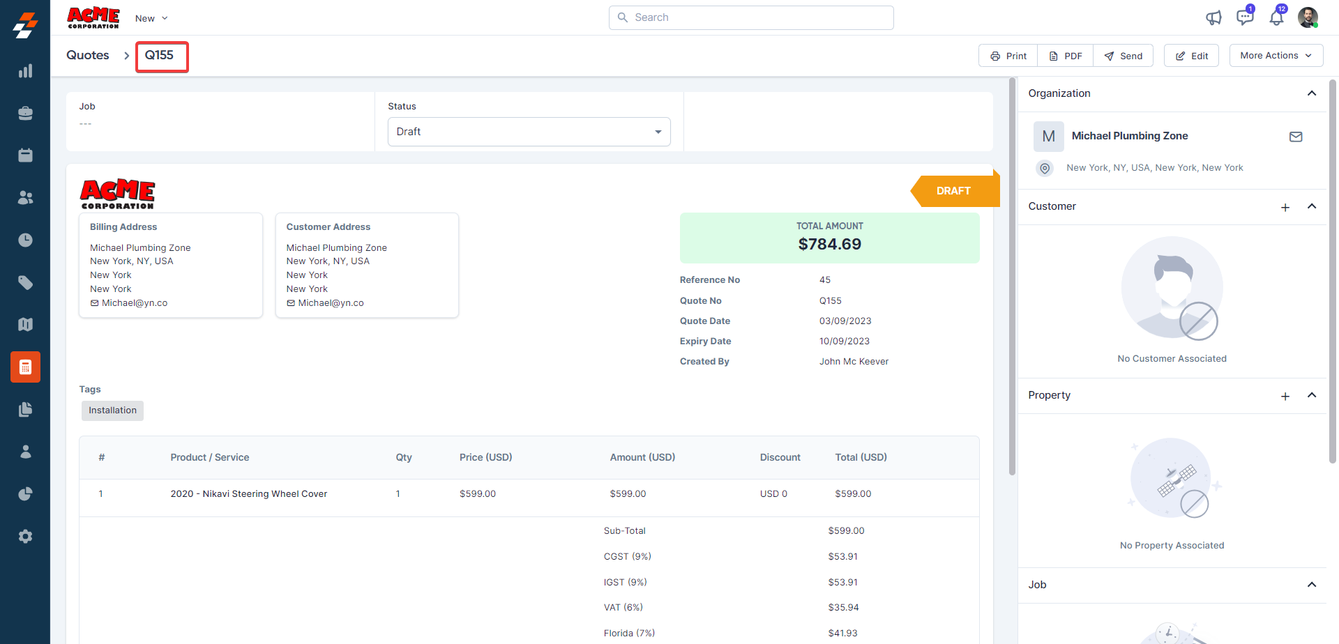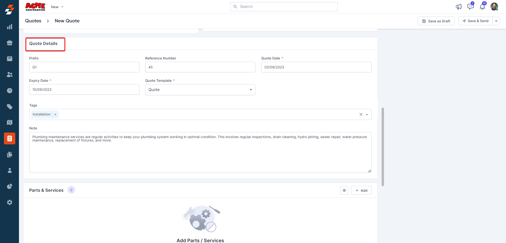 A quotation, also known as an estimate, is a document that covers the parts or services you’ll need to complete a job and their approximate cost. Quotations are sent to customers before the commencement of a job for acceptance. Zuper's Quotation ...