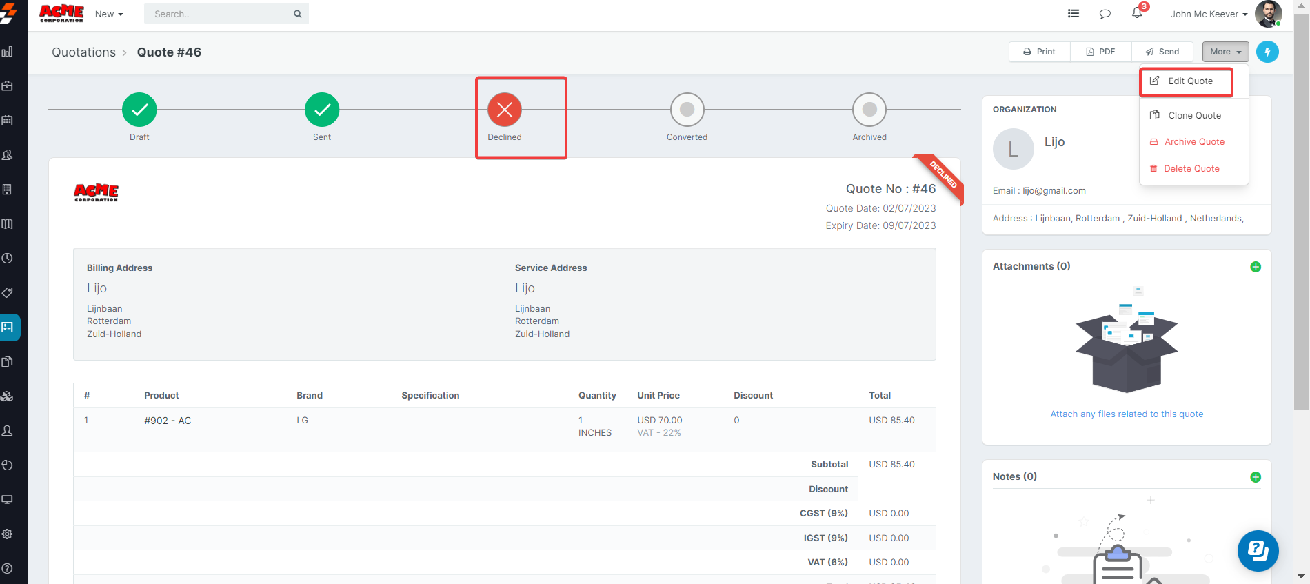 Whenever businesses want to recover declined or rejected quotes, our new update helps them to edit the recovered quotes easily.