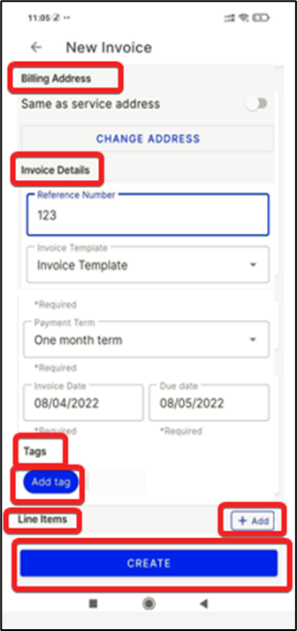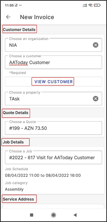 - Select the required Job details to choose a job, job schedule, and job category, and select the required service address.