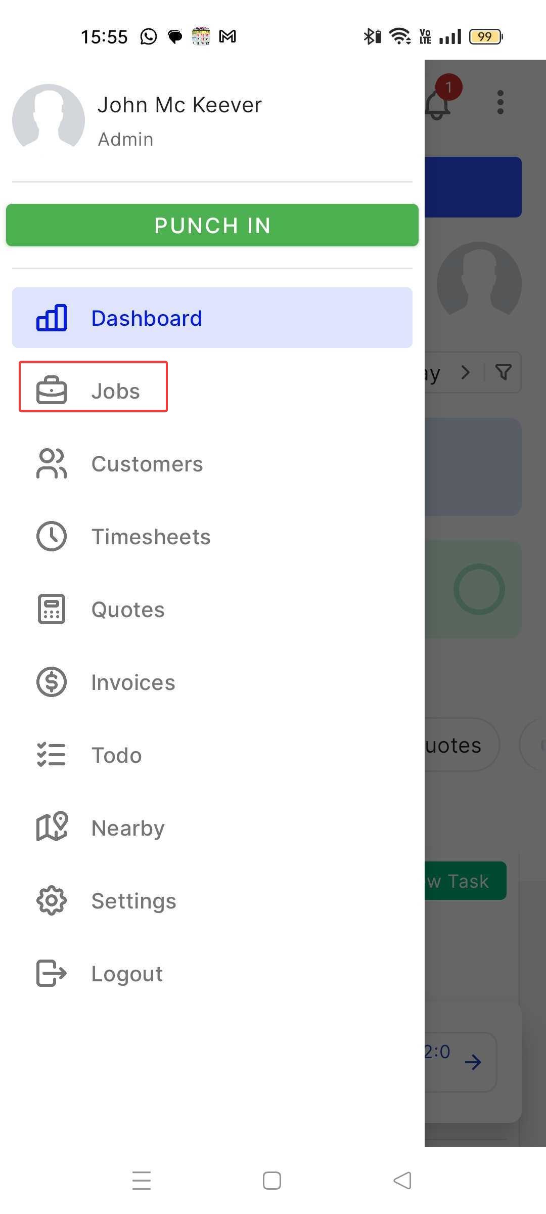 1. Select the "Jobs" module from the top-left hamburger icon.