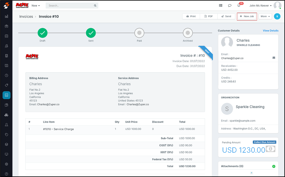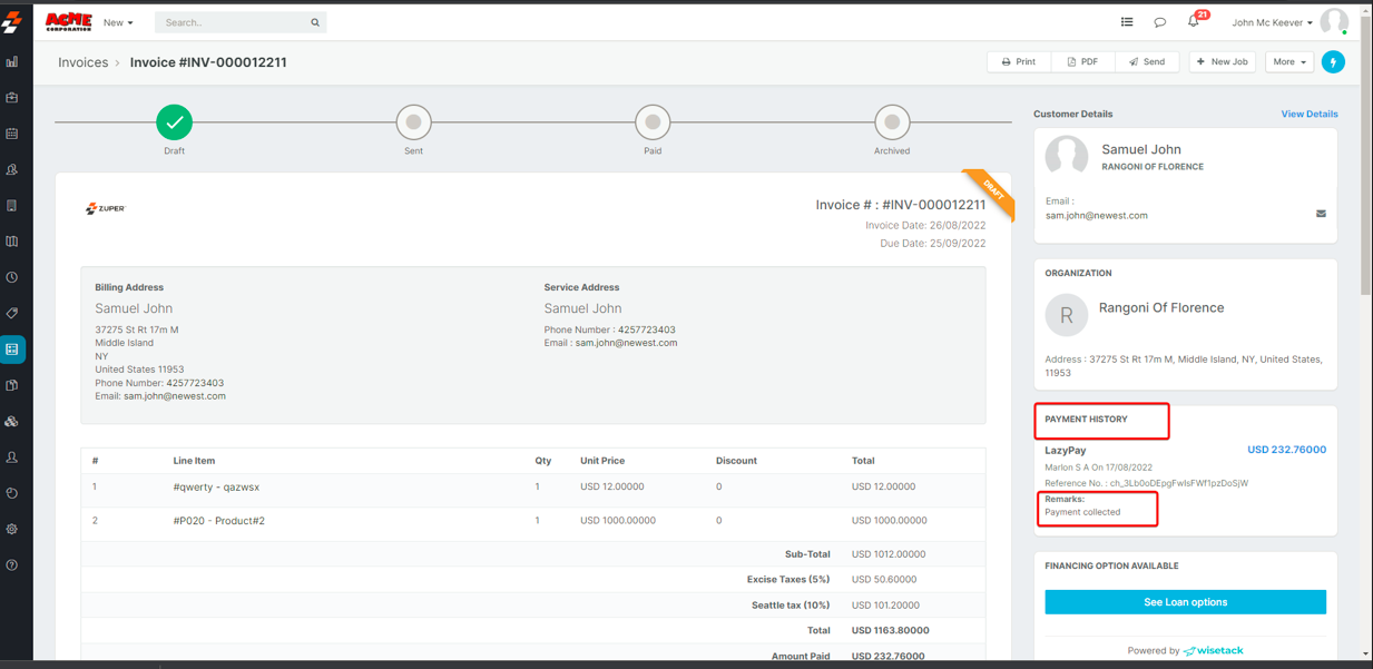 The invoice payments and discounts are critical and with Zuper's invoice, you can easily create and manage the invoices without any issues.