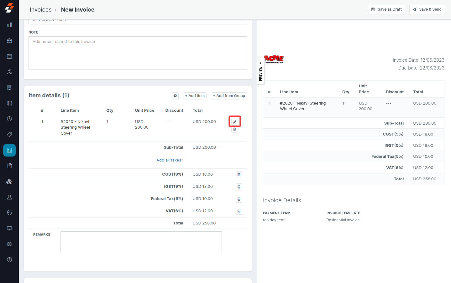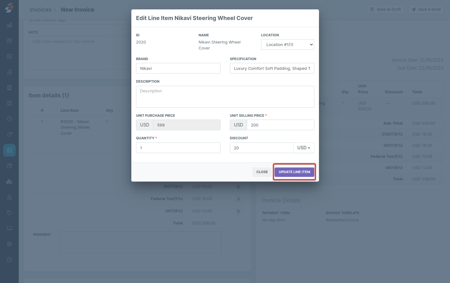 8. An “Edit Line Item” pop-up appears. Modify the necessary details.