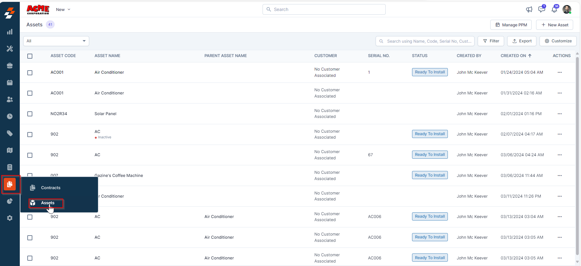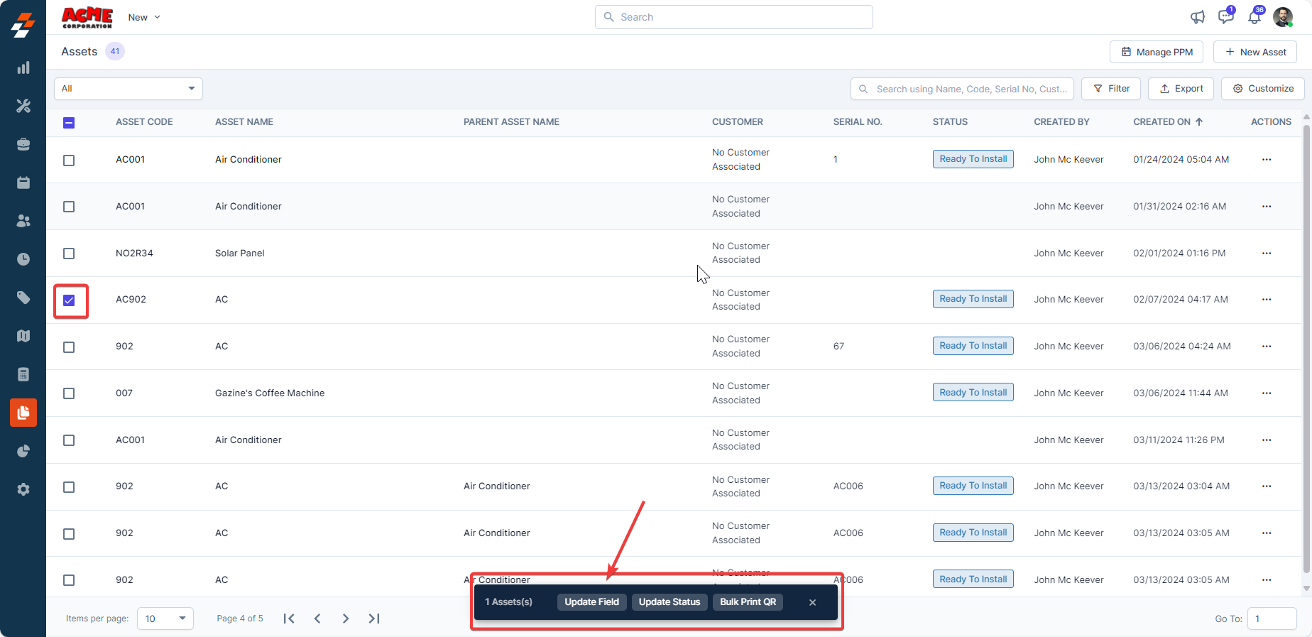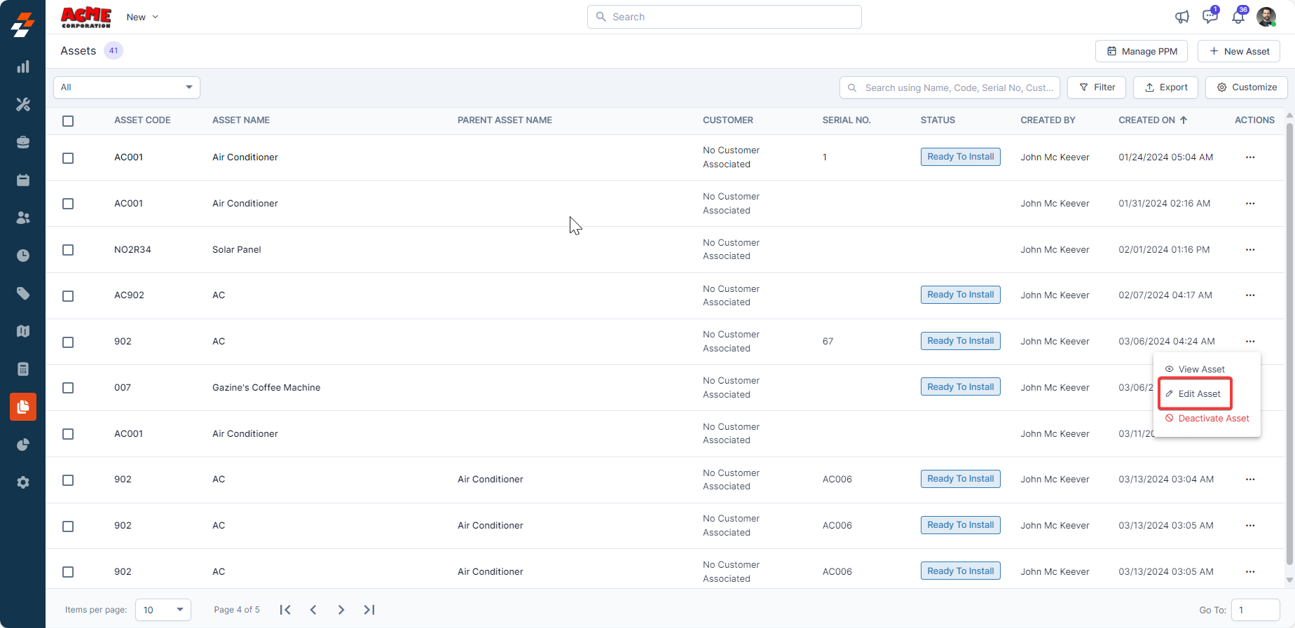 To deactivate/activate an asset from the asset listing page, follow these steps:
