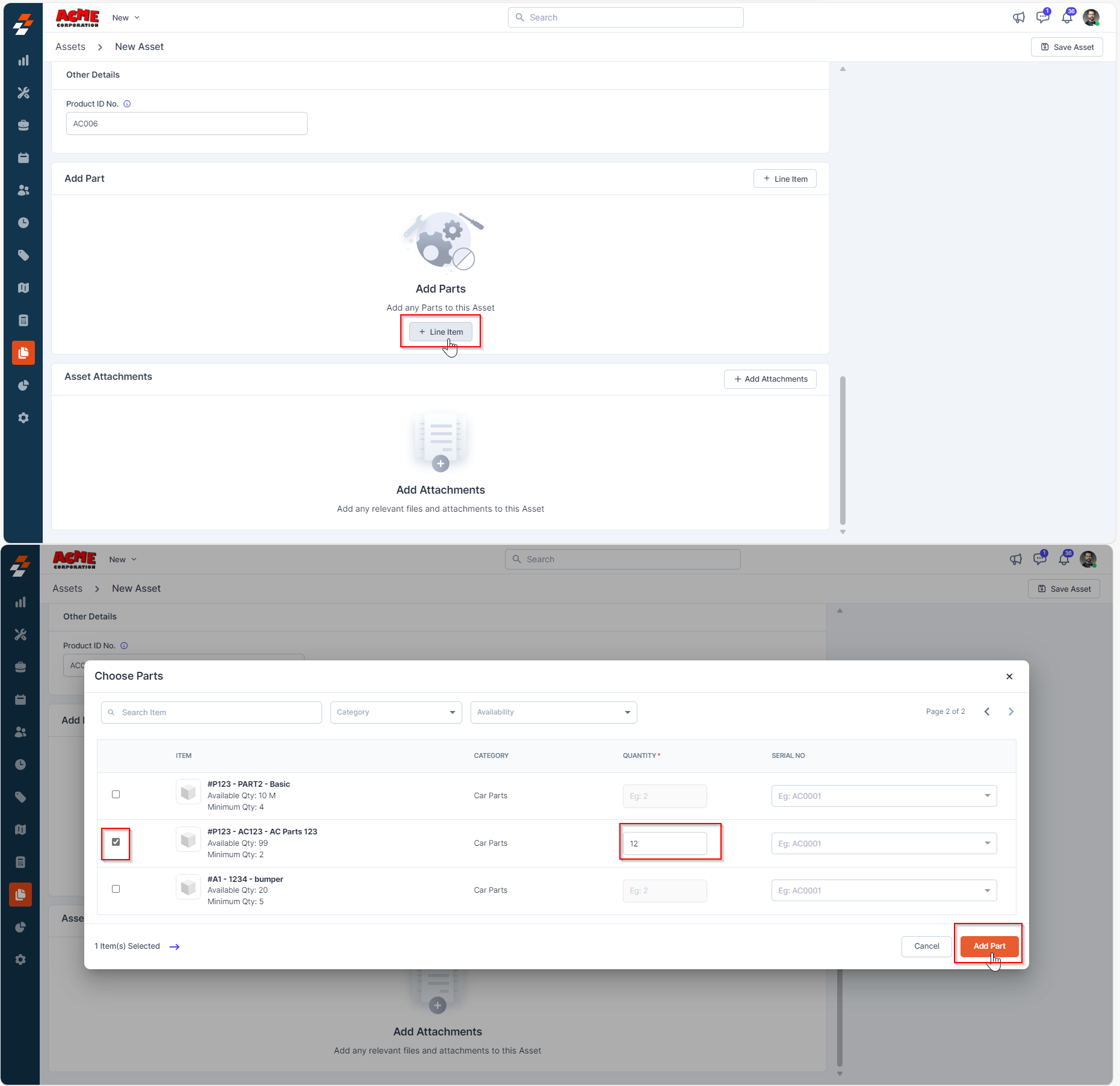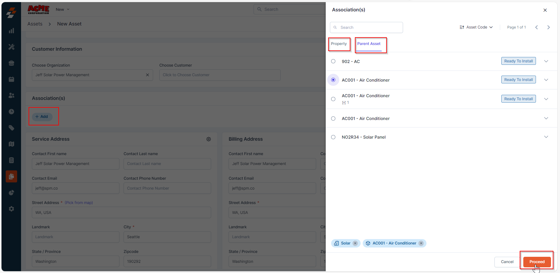 1. From the Asset listing page