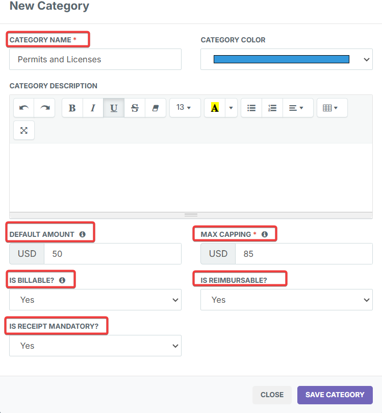 - Set Receipt Mandatory to Yes if a receipt is required for the expense.