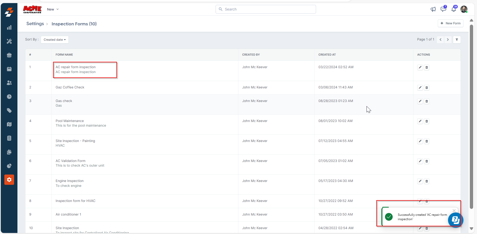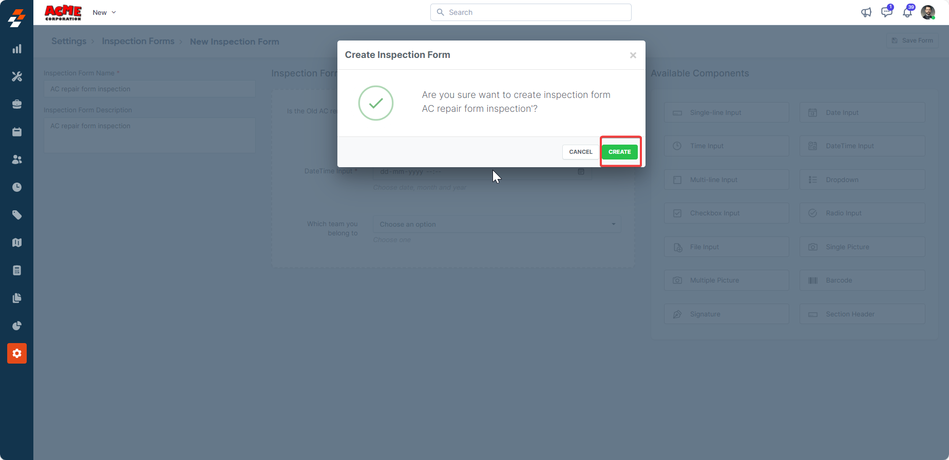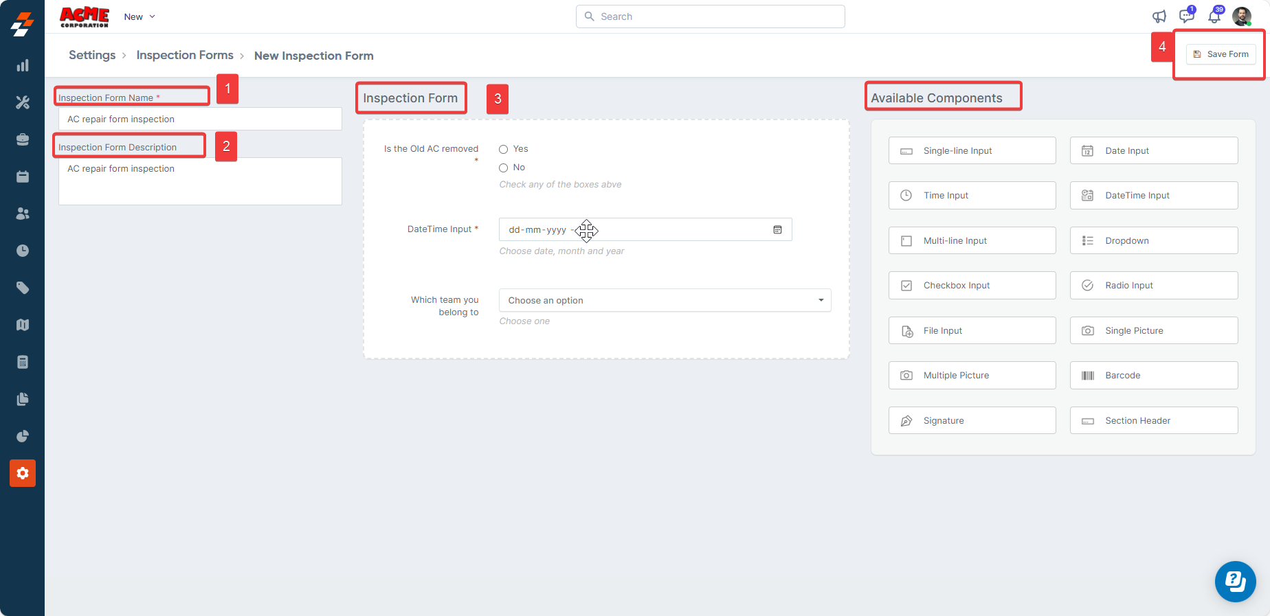Now that you have successfully configured and created a new inspection form. To associate the Inspection Form with the Assets and Jobs module, follow these steps:
