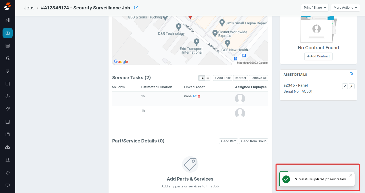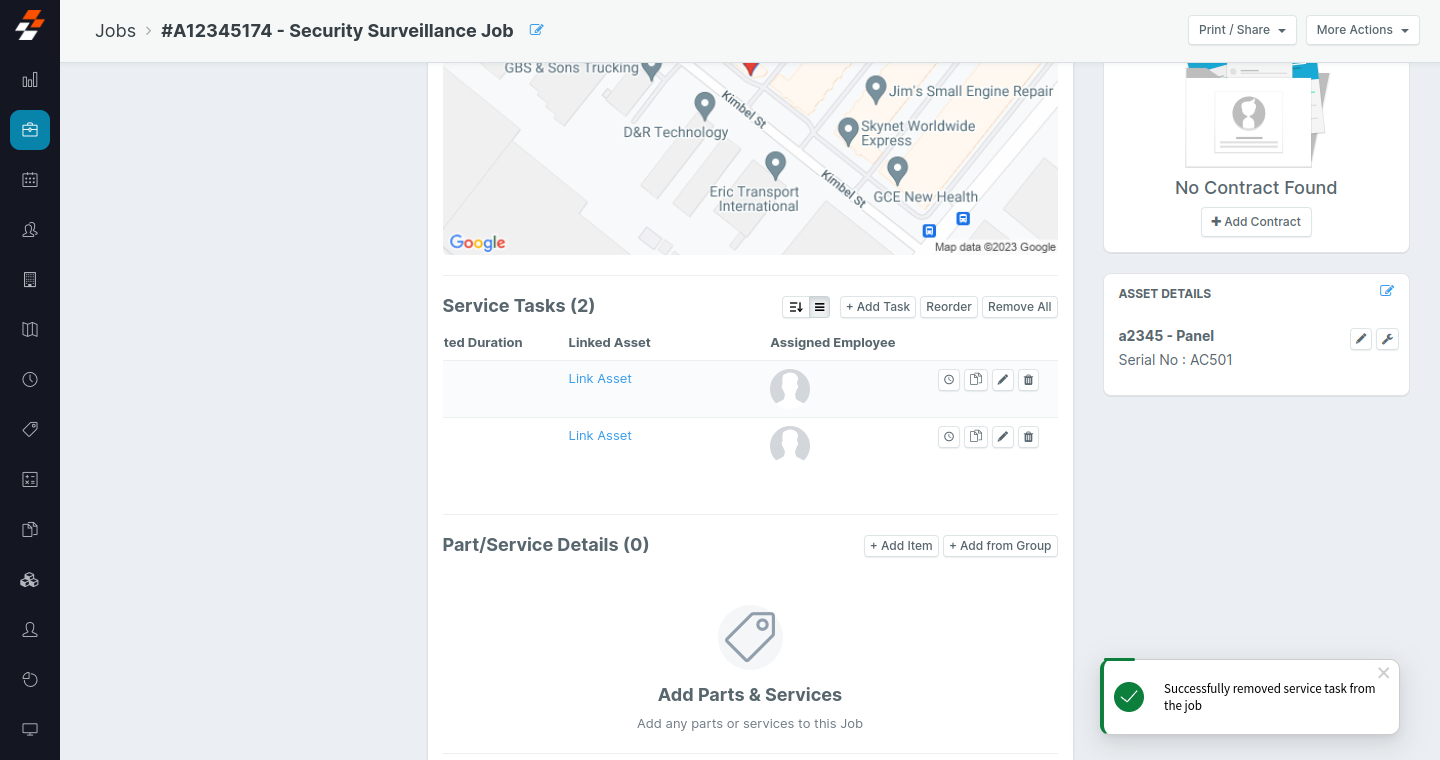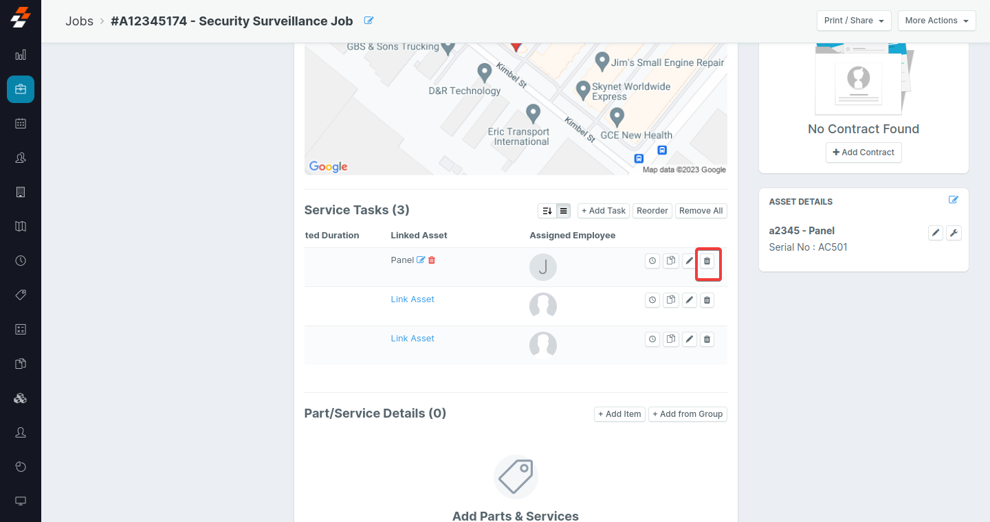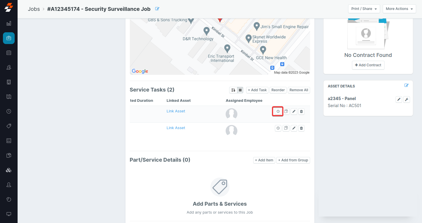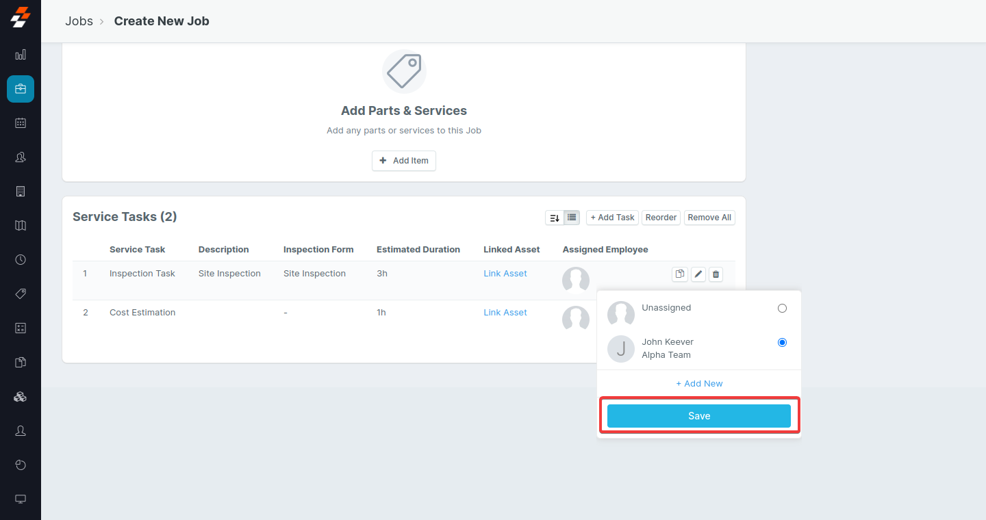 2. From the Job details Page, under the Job details tab, scroll down to view the “Service Tasks” details. Select the “Assigned Employee” option.