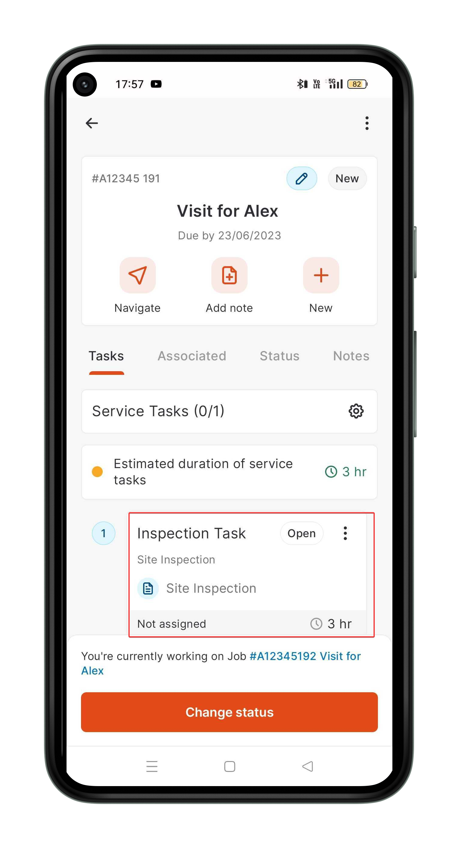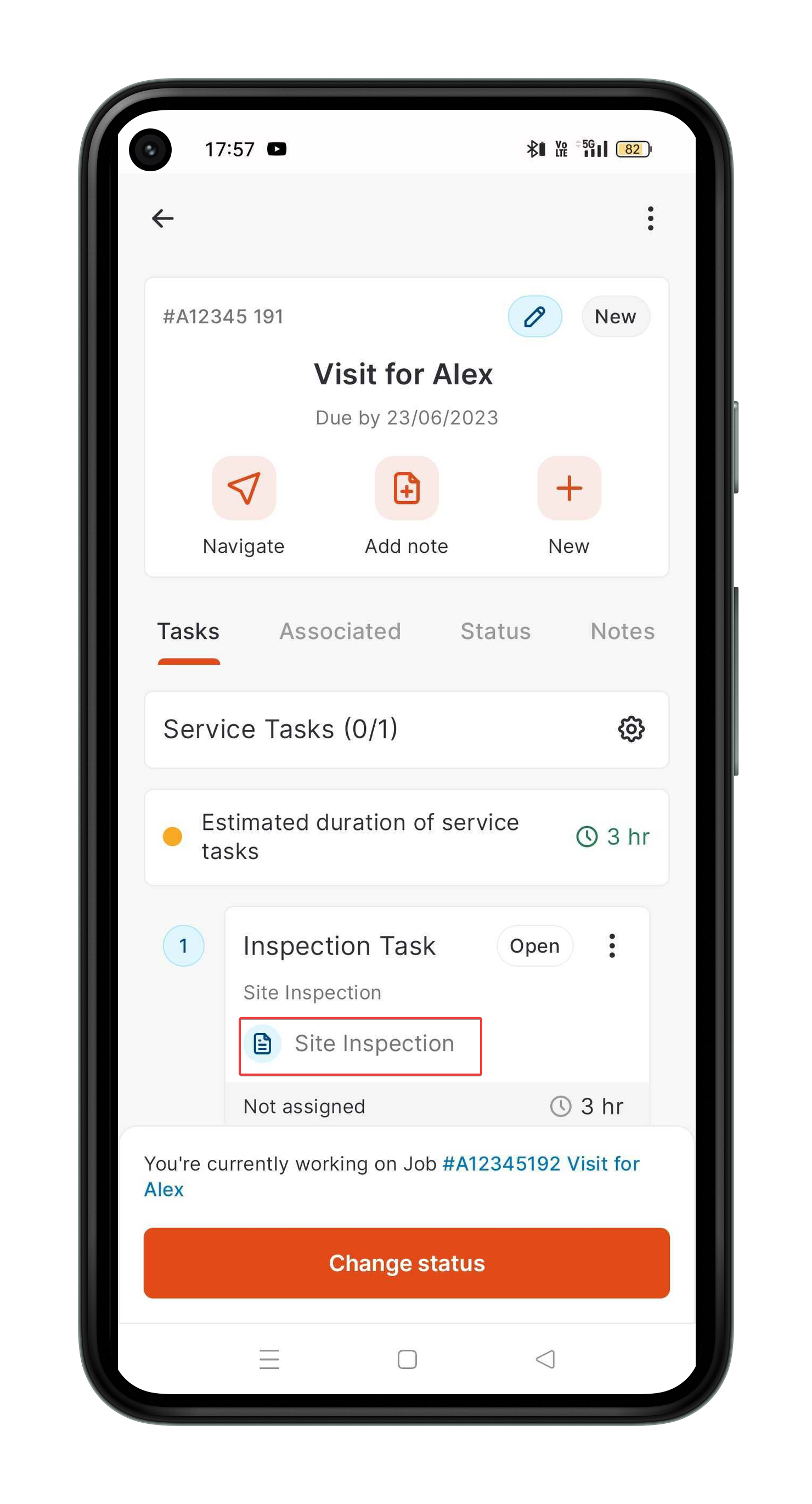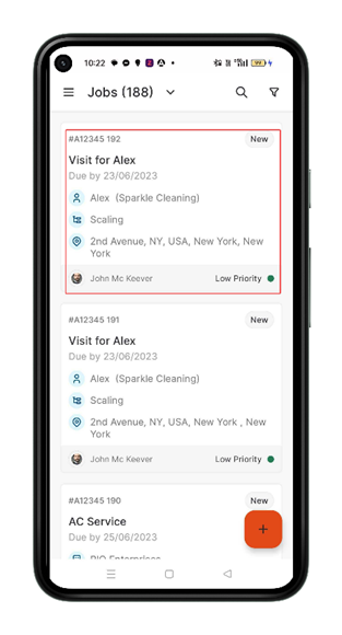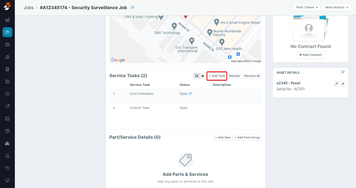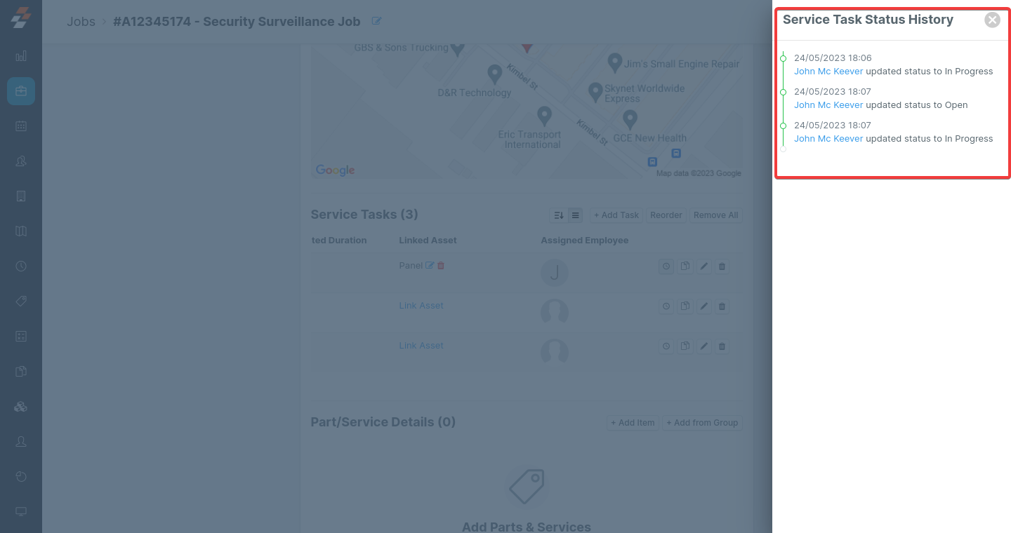2. From the Job details Page, under the Job details tab, scroll down to view the “Service Tasks” details. Select the “Assigned Employee” option.