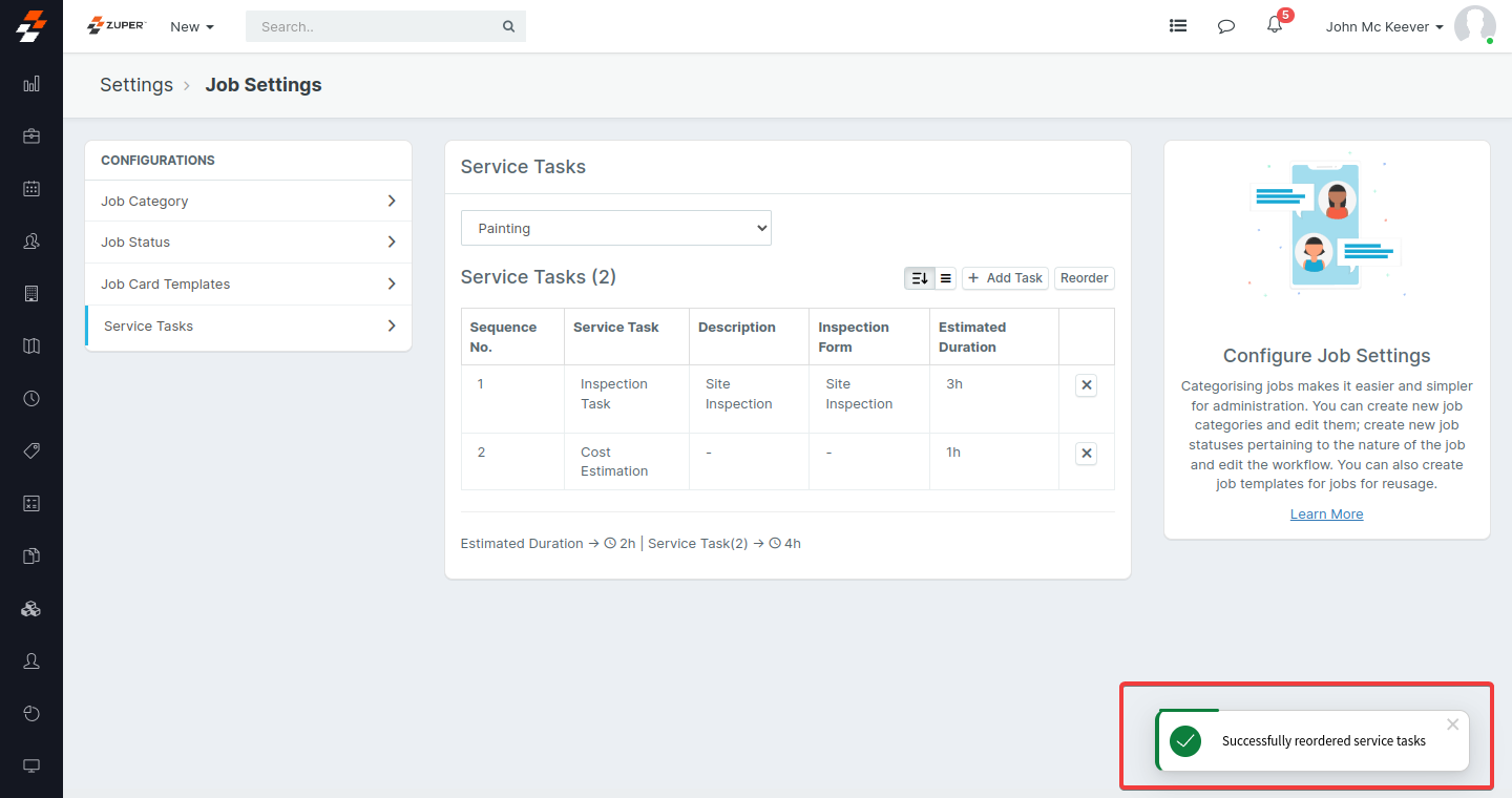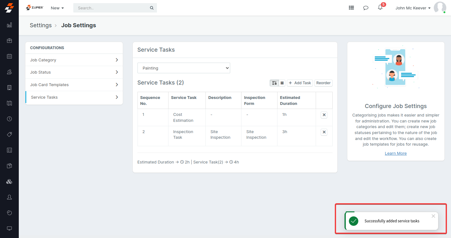 Our Zuper’s new feature, Service Tasks, helps the field executives complete each service task mapped to the jobs.
