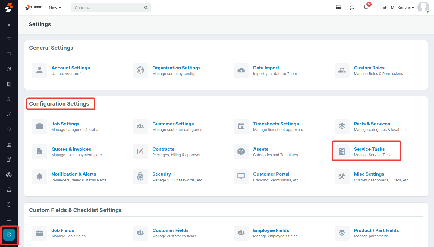 1. Select the “Settings” module from the left panel, and under the “Configuration Settings,” select “Service