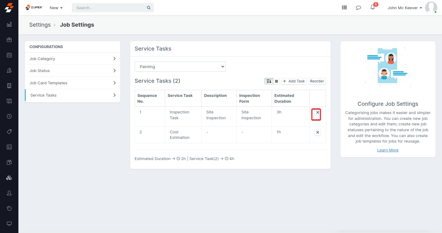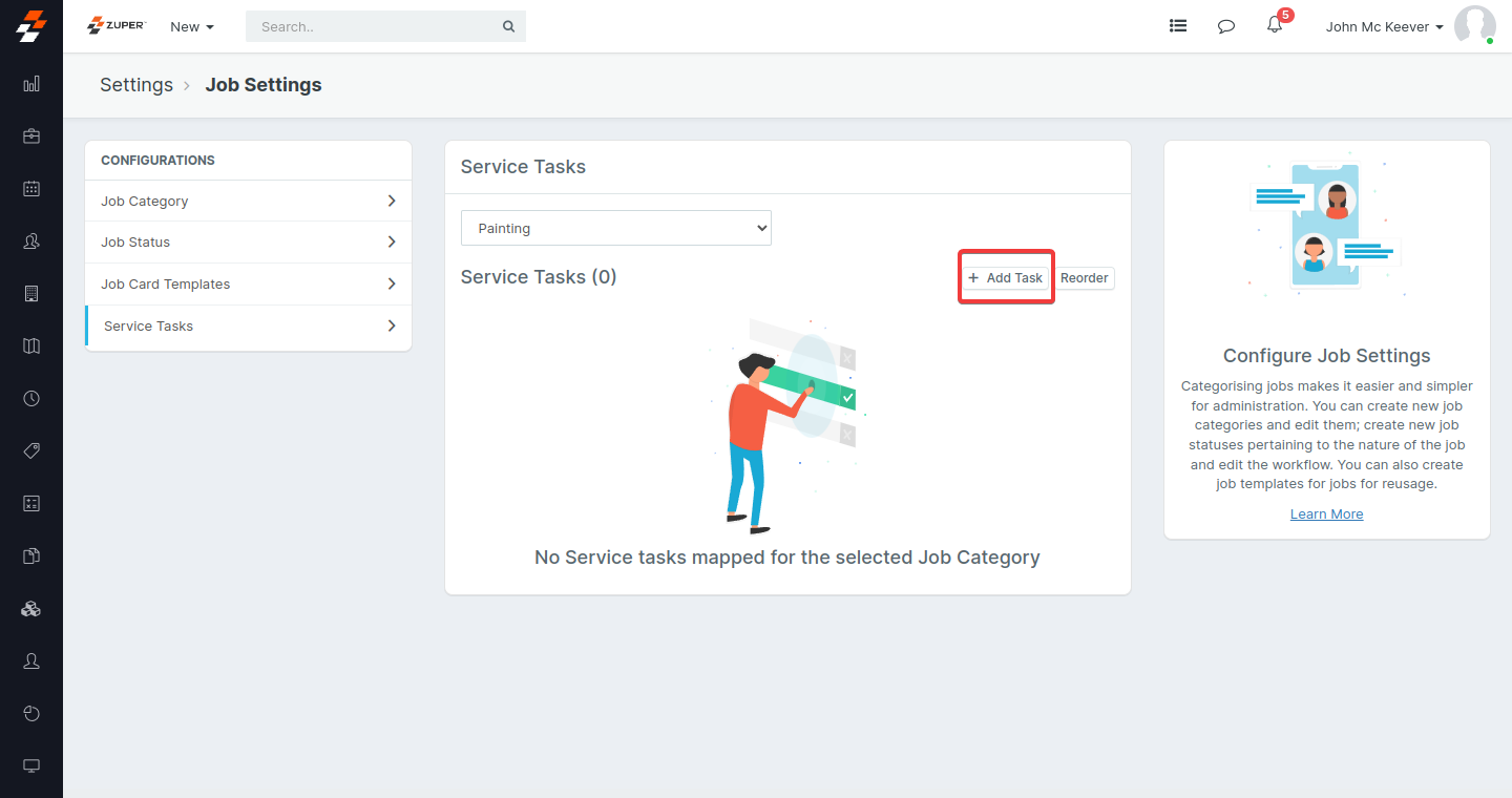1. Select the “Settings” module from the left panel, and under the “Configuration Settings,” select the “Job