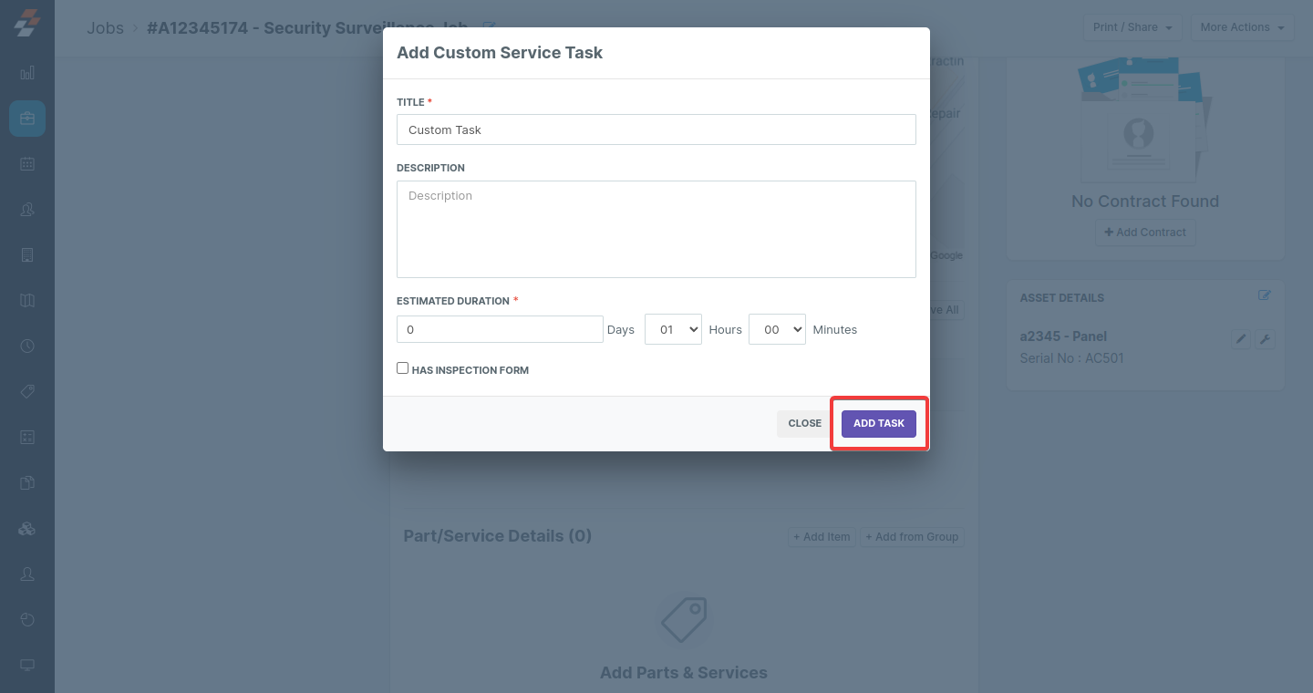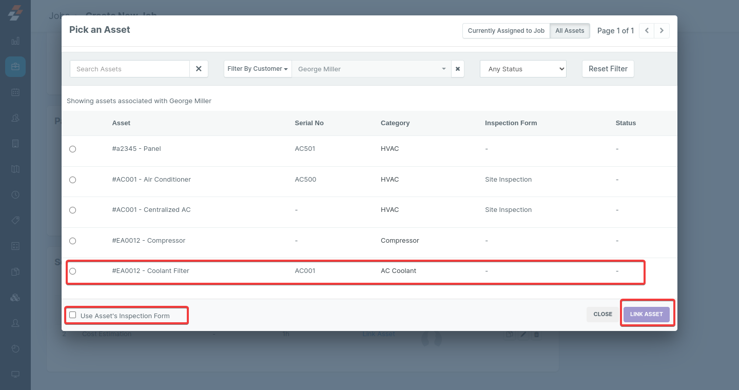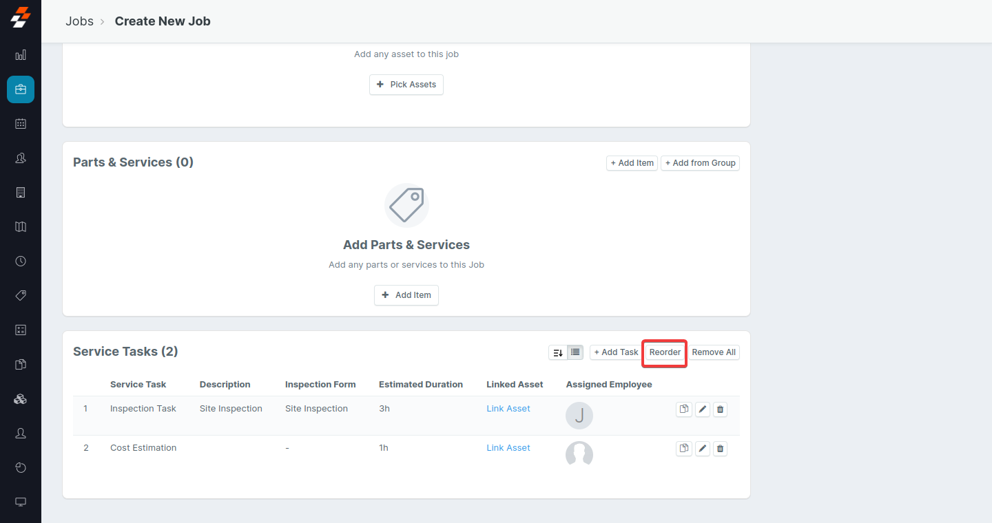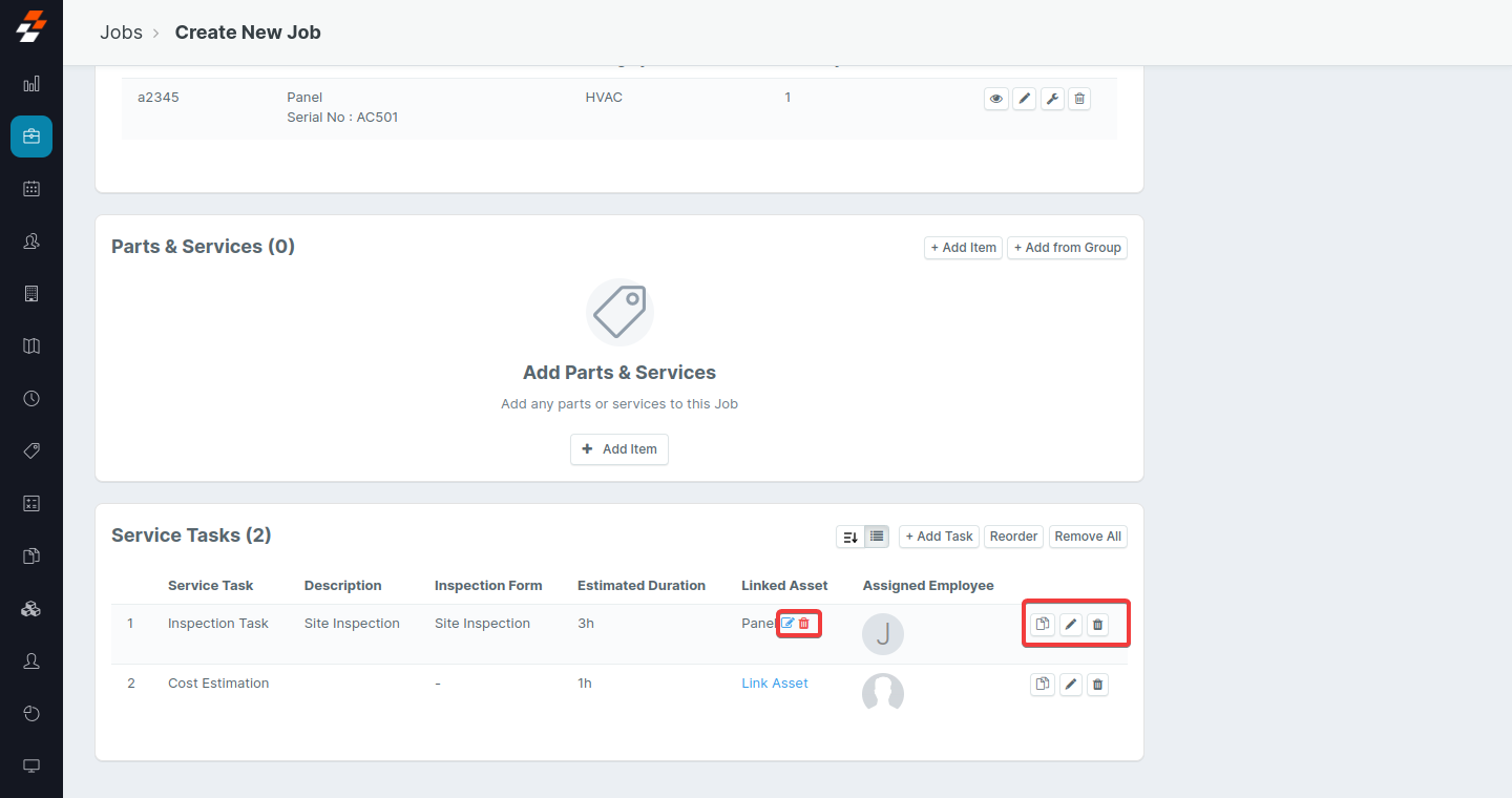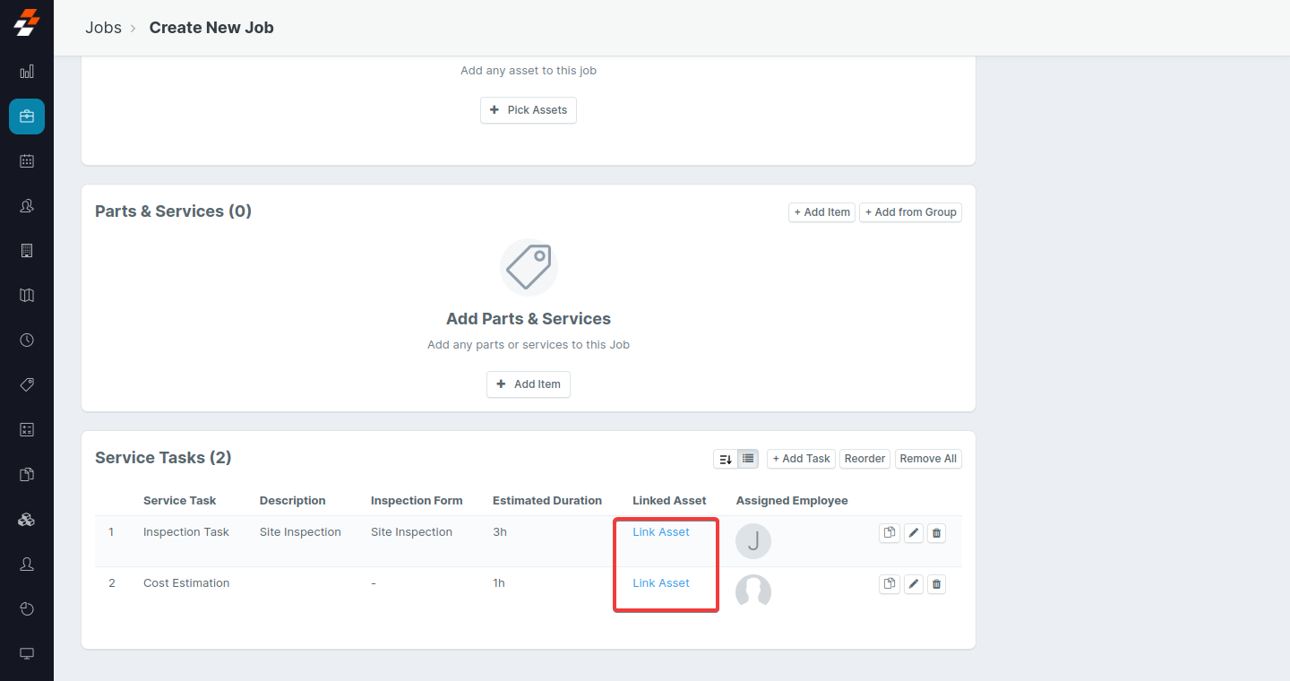9. Use the “Link Asset” option to add the assets to the service tasks.