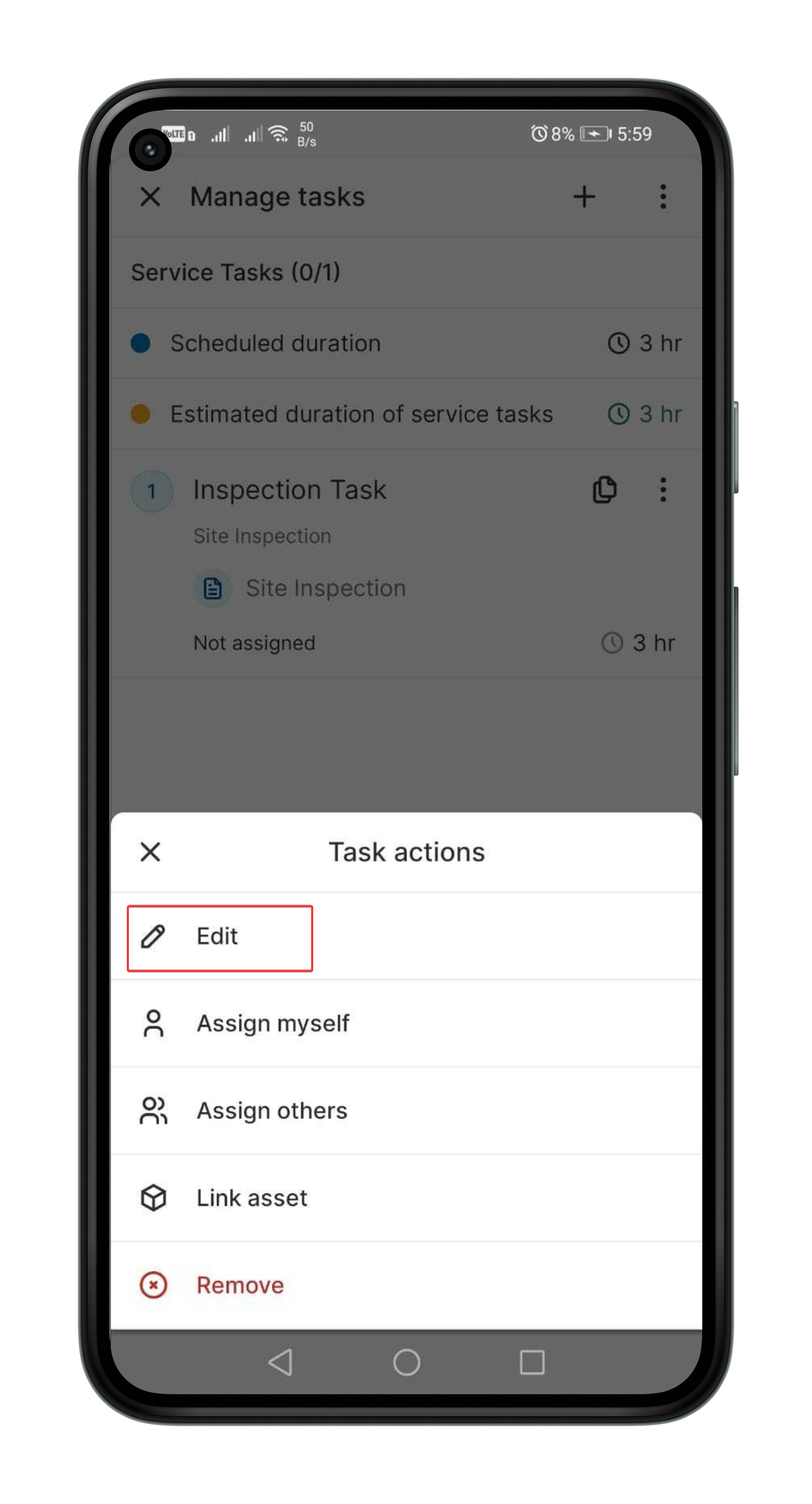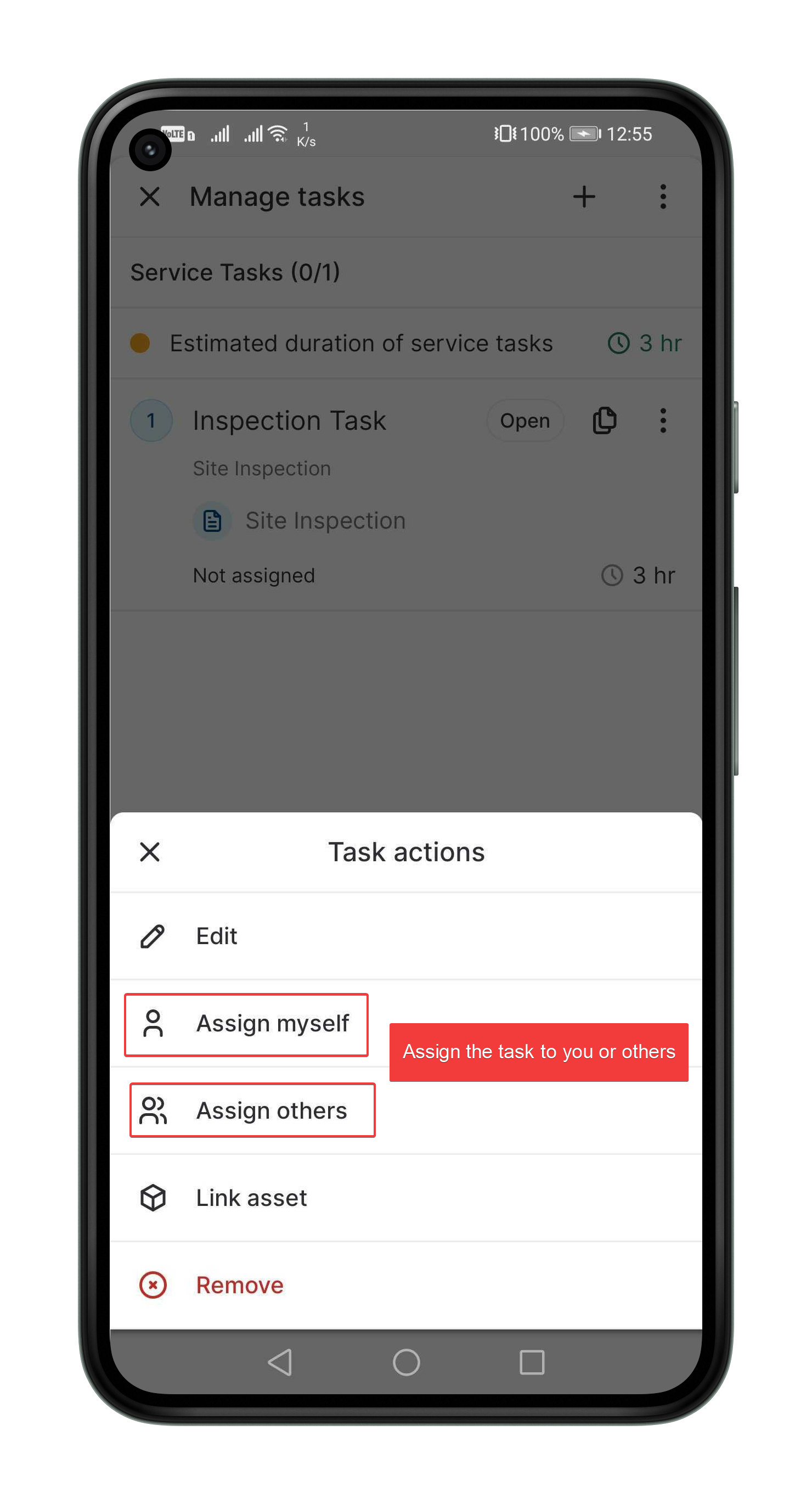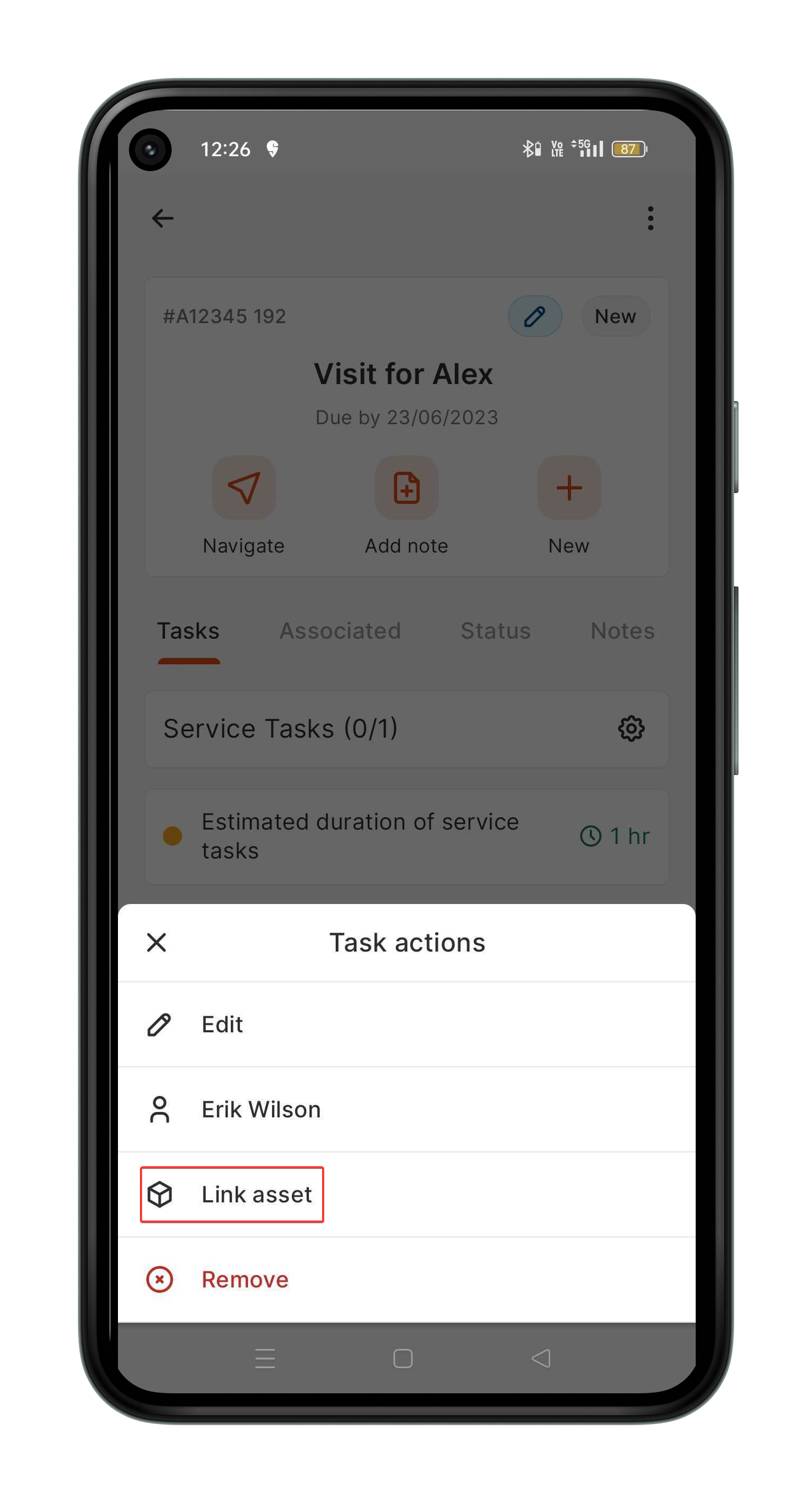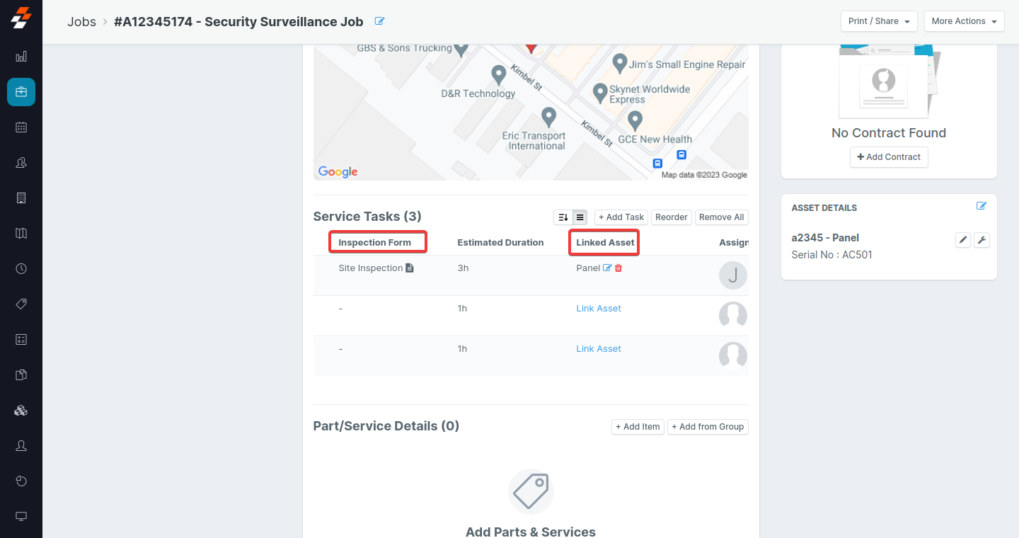 9. Use the “Link Asset” option to add the assets to the service tasks.