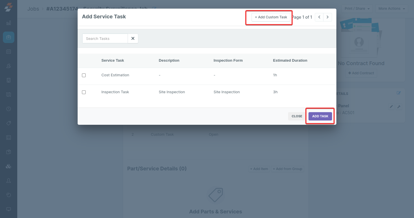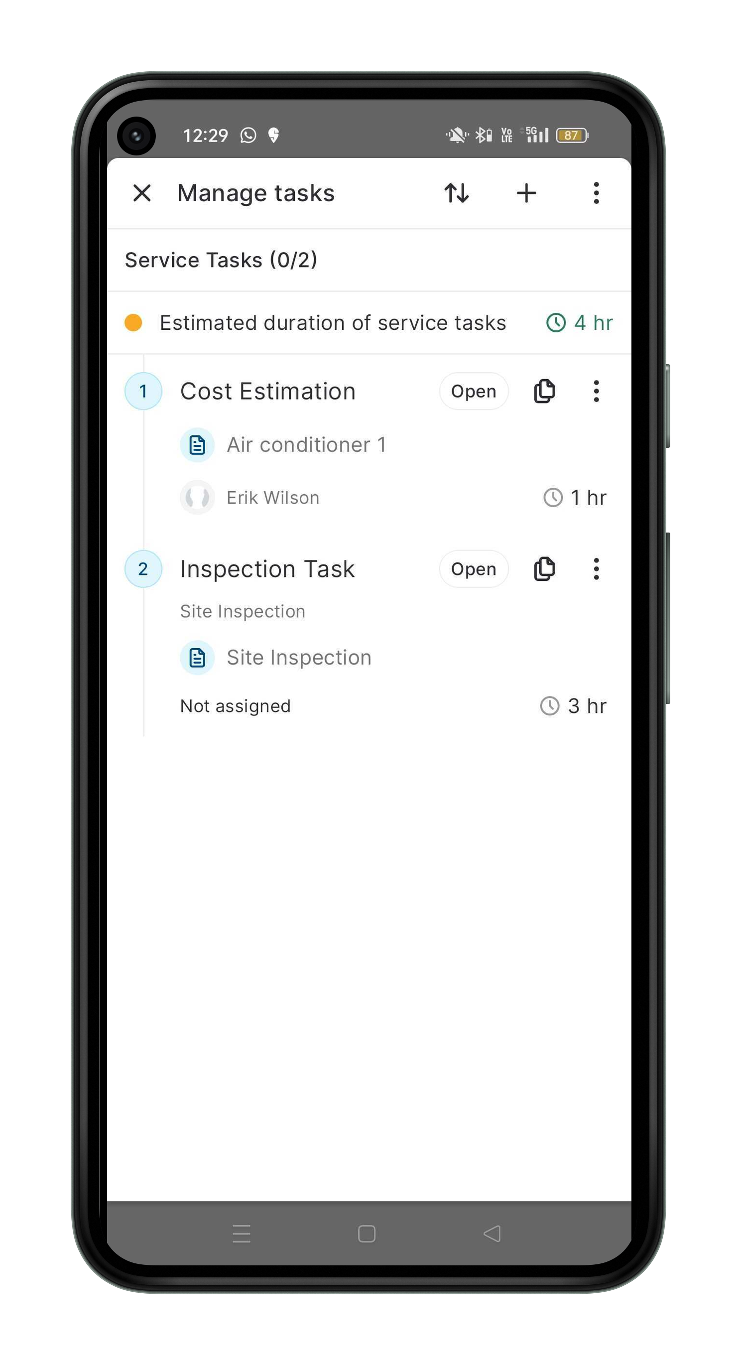 Service tasks are used to create process steps, or checklists, for the field technician to follow when completing a work order and can be added manually or by associating service tasks with each job category.