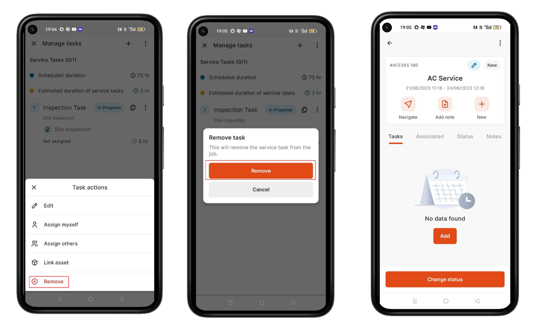 The task status must be changed to any one of the terminal statuses – Incomplete, Closed, cancelled before completing or closing (Job Status Type) the job.