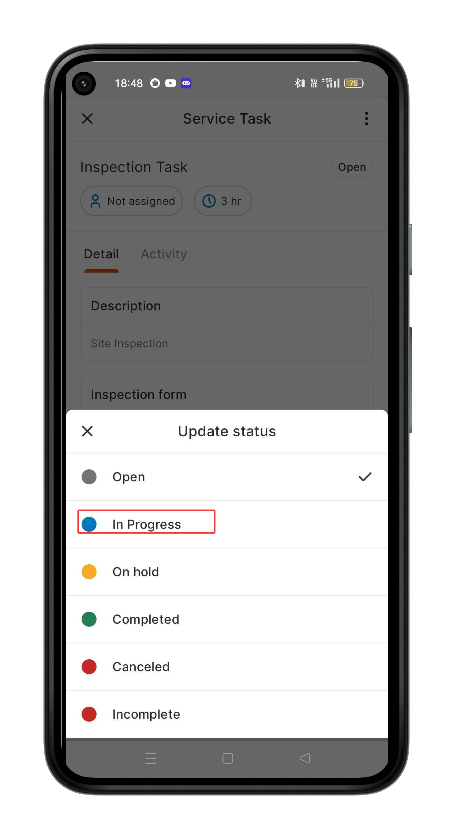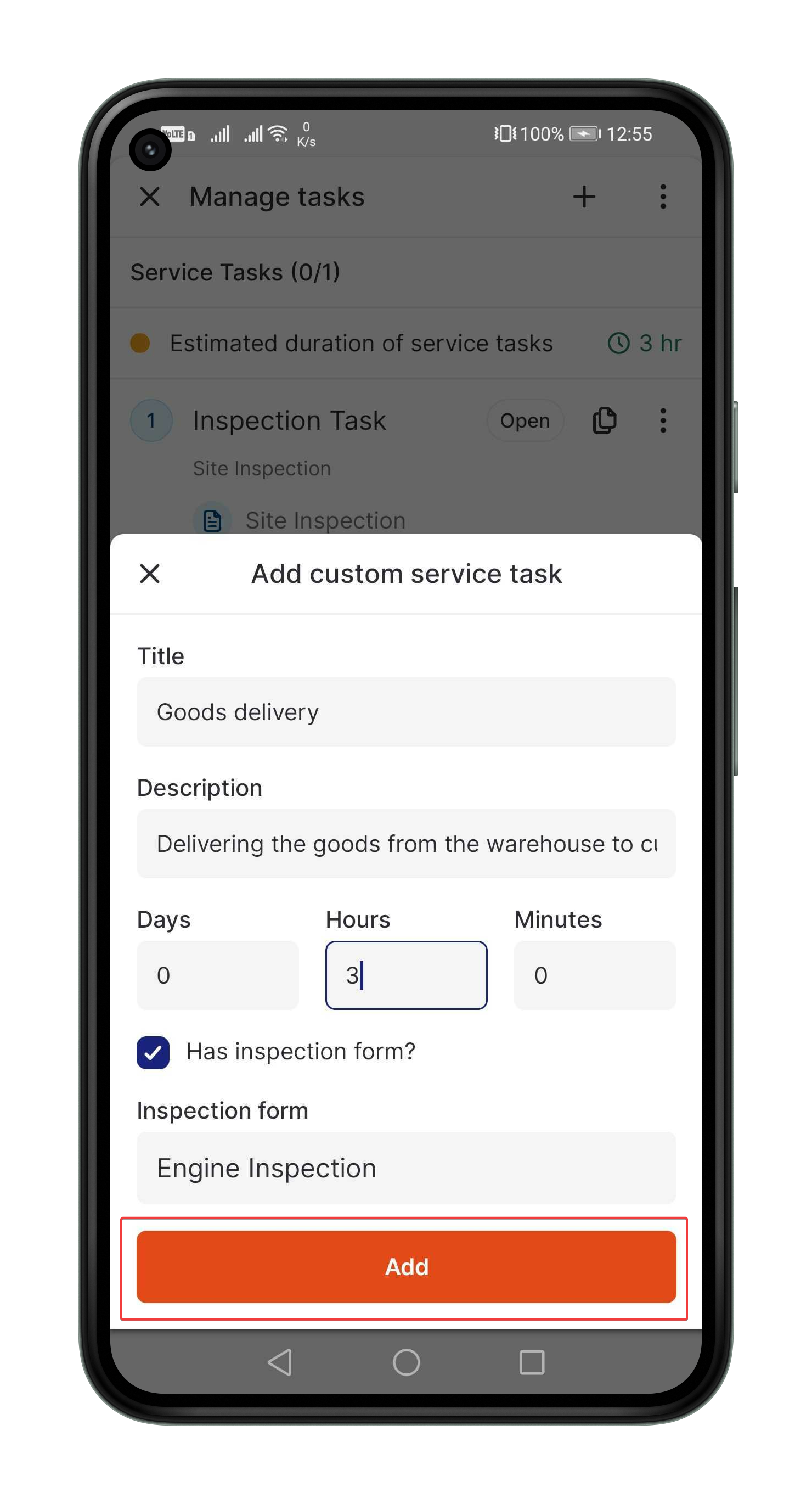 Form (Optional)– The drop-down box will appear to choose the inspection form from the