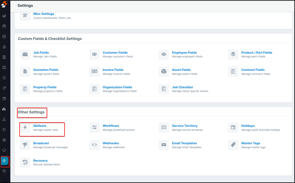 Settings” option, choose the Skillsets.