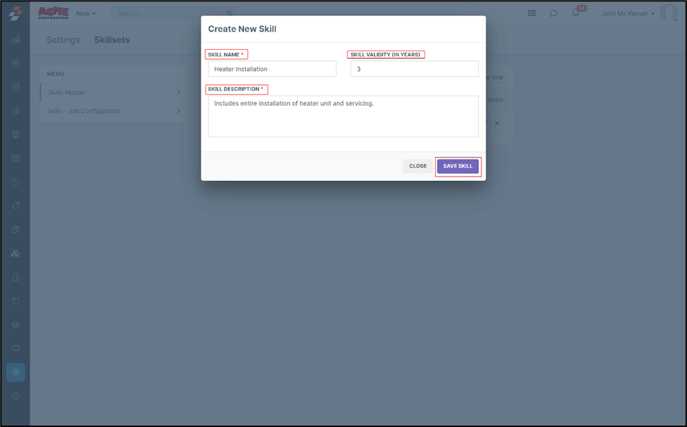 Using the “Skillset Master” option, it is now easy to create and manage skillset easily by defining the person’s skillset requirements for the Job.