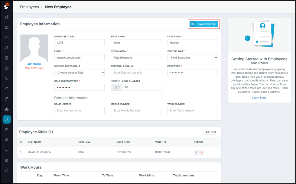 the “Save Employee” option to save the details.